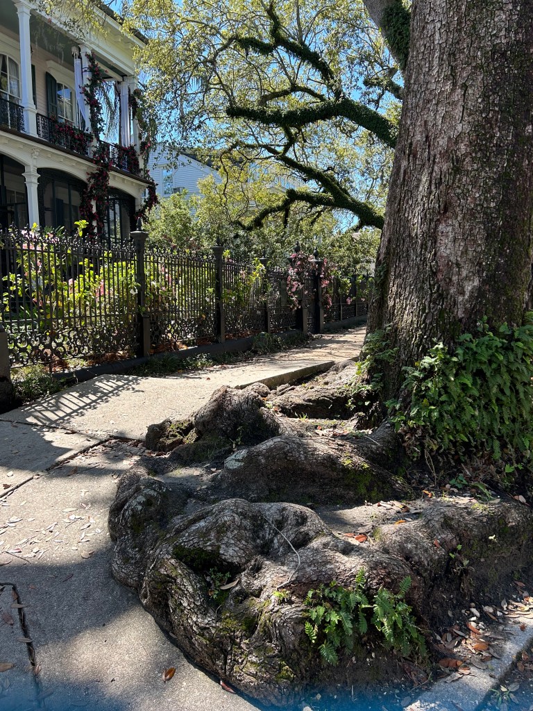 We are staying in the Irish Channel neighborhood. Deep in the neighborhood. Like, adjacent to train lines and port traffic, warehouses, storage buildings, and long-deserted cotton processing plants. We are also walkable to Barracuda Taco and Margarita Garden, Tracy’s, Parasol’s, Tipiana’s, and so many, many more places where they take food, cocktails, music, and conversation very seriously. This coming weekend is St Patrick’s Day, and rumor has it that there will be celebrations all throughout the neighborhood, complete with parades, costumes, and tossing of cabbages and potatoes. Lots of sinners celebrating the saint. More cherished conflict.