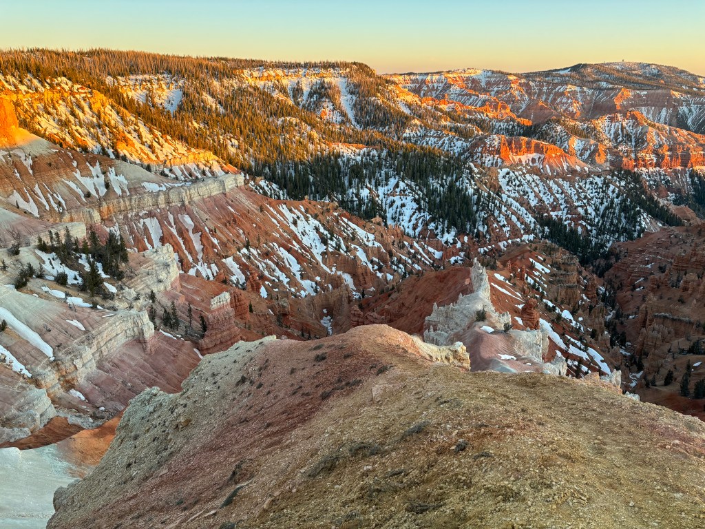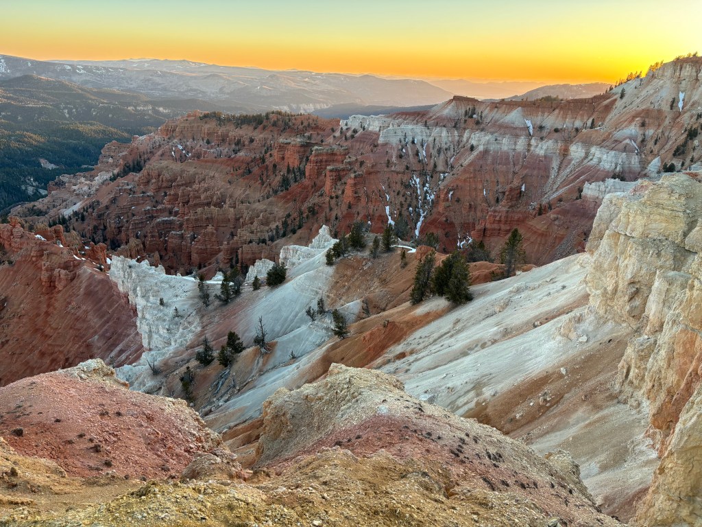 Has it really only been a week (basically)? It feels like we’ve been here for way longer. It feels like we’ve been to a different planet too. Southern Utah has a lot to offer, and more than we can possibly take in during the short time we have for this visit. We have managed to hike Snow Canyon, Zion Canyon, and Bryce Canyon (twice for Kim), and we explored parts of Cedar Breaks for sunset/dark sky star watching. That’s pretty good for a work week.