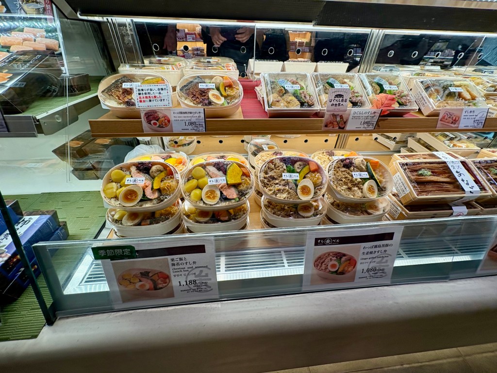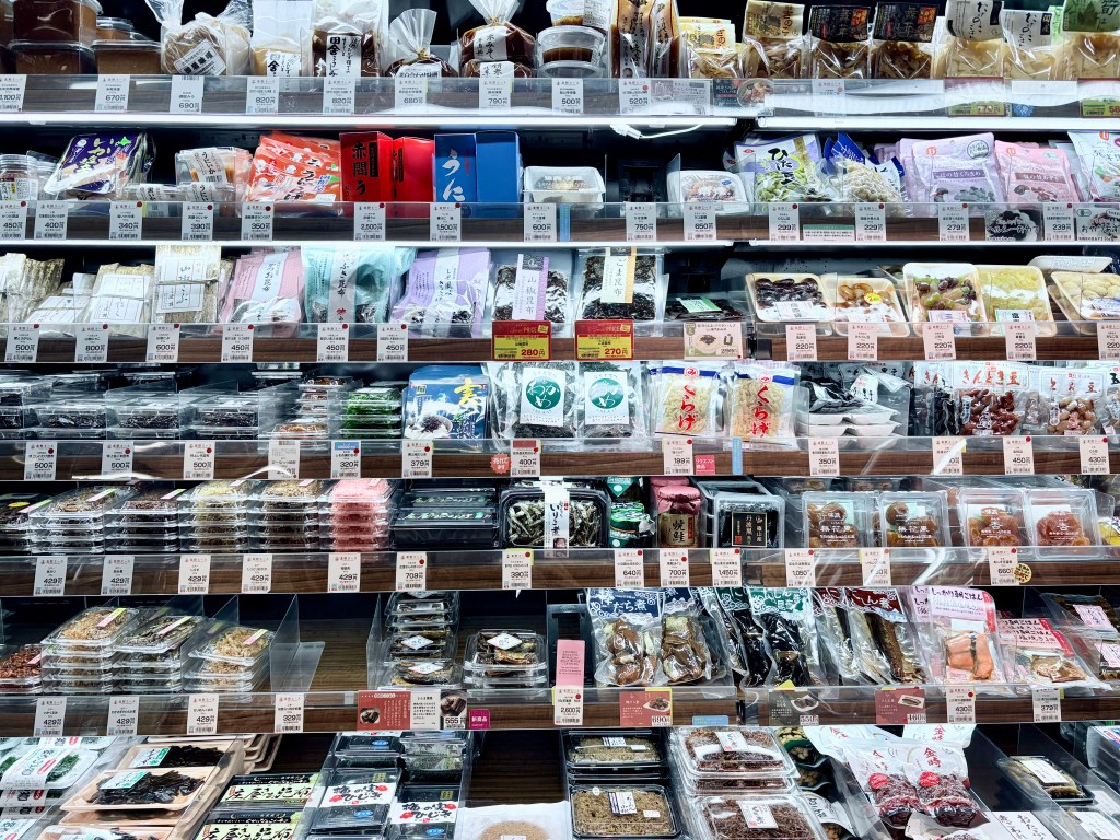 So far I’ve narrowed pictures for summarizing our trip down to about 60, But those don’t include pictures of food. The food! Oh, the food! I think I have equal — or more — pictures of food than of all other types combined (crazy toilets might come in second). I’ll probably add another 50 pictures just of the food. We ate widely and well. We certainly ate outside our comfort zones a time or two. We definitely ate more textures and colors and fermentation than we are used to with our western diet. We were blown away by the quality and actual convenience the convenience stores (e.g., 7-11) offered. I can’t say I would ever even consider eating a pork cutlet at midnight from a 7-11 in America. Yet, in Tokyo, it was hardly a second thought. As people who enjoy going into grocery stores when traveling, we were in absolute heaven in Japan.