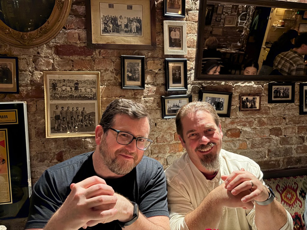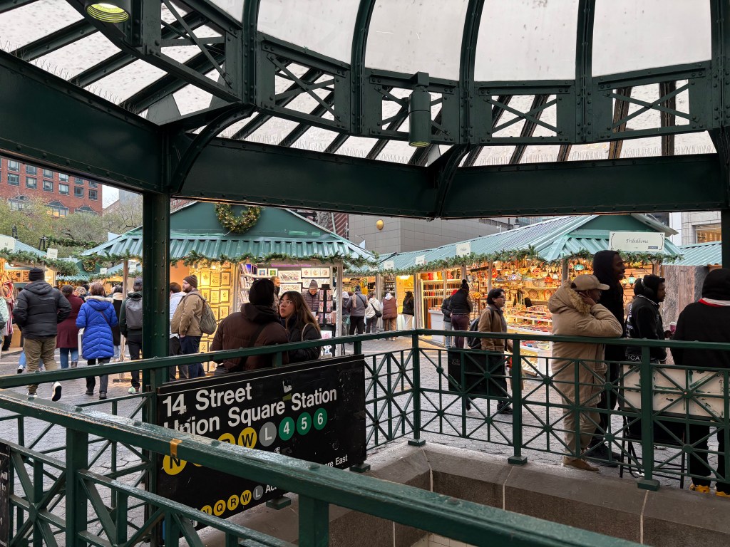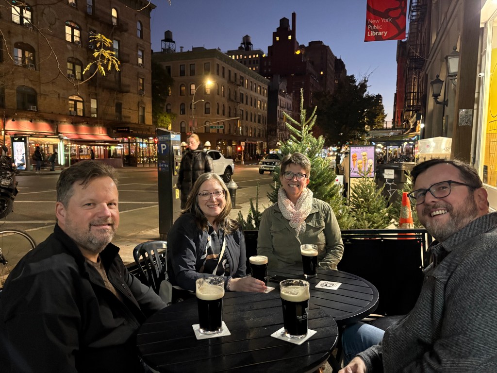 Then, this past weekend, the Turners came for three nights. And while the weather was not awesome, and we were all four in some stage of recovering from illnesses, we still managed to have a helluva good time! We ate Serbian food, Thai food, sushi, and of course pizza, bagels, and bialys. We had excellent cocktails and surprising sour beers. We walked the Brooklyn Bridge, and popped in on the holiday market at Union Square and in the Vanderbilt Hall at Grand Central. We even got Amy to the Dumbo Market, one of her favorites.