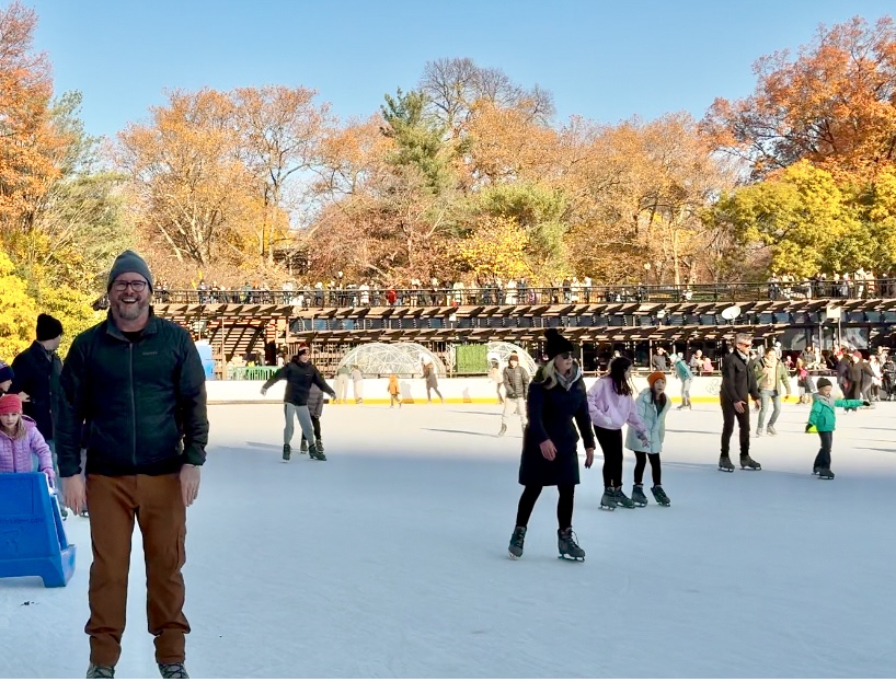 Our last Saturday in the city was packed with Peak Experiences. We started out with ice skating in Central Park. It was clear and cold, with bright blue skies. We teetered and wobbled and windmilled and laughed, but soon we got our footing; our muscle memory reached way back to remember how to skate. It was joyful. We weren’t too far from home, but instead of returning to the apartment, we decided to stay out enjoy the weather and the day off. We covered a wide swath of the city: Chinatown for pork buns. Of course a guitar store and a book store were in the mix. In the evening, we headed back up town, scored some crazy delicious tacos from our handy dandy award winning local food truck and called it a night.