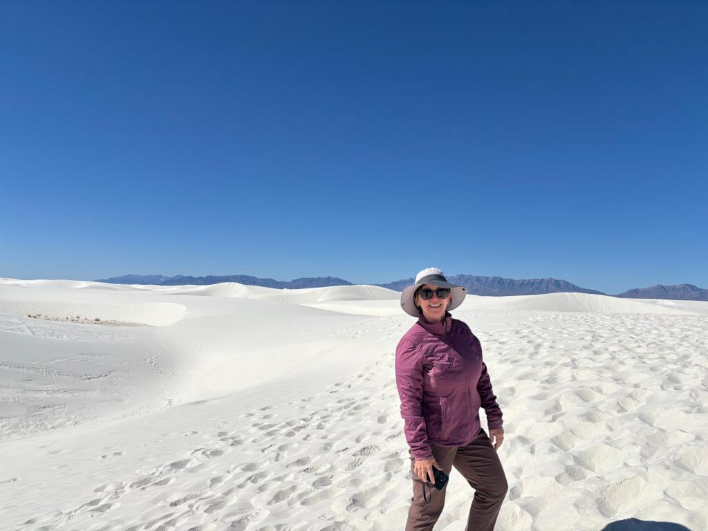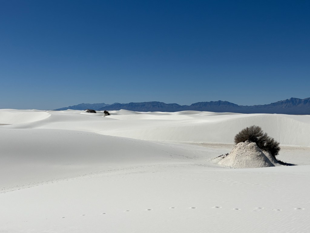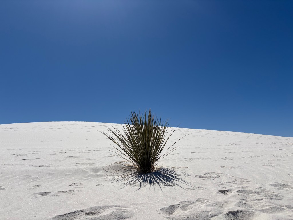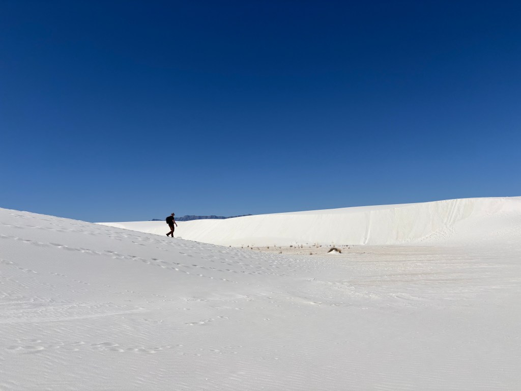 The next day we visited White Sands, bright, vast, ever-shifting dunes rising high in the dry, hot, and seemingly desolate and barren desert landscape, the result of millions of years of erosion and renewal. Unchanging yet always changing. A fragile ecosystem unlike anything else. So undulating and varied with walls of sand so tall that people with agoraphobia might feel a little less anxious or exposed. It is the world’s largest gypsum dunefield and it all started 280 million years ago when the Permian Sea covered the area and gypsum settled on the sea floor.