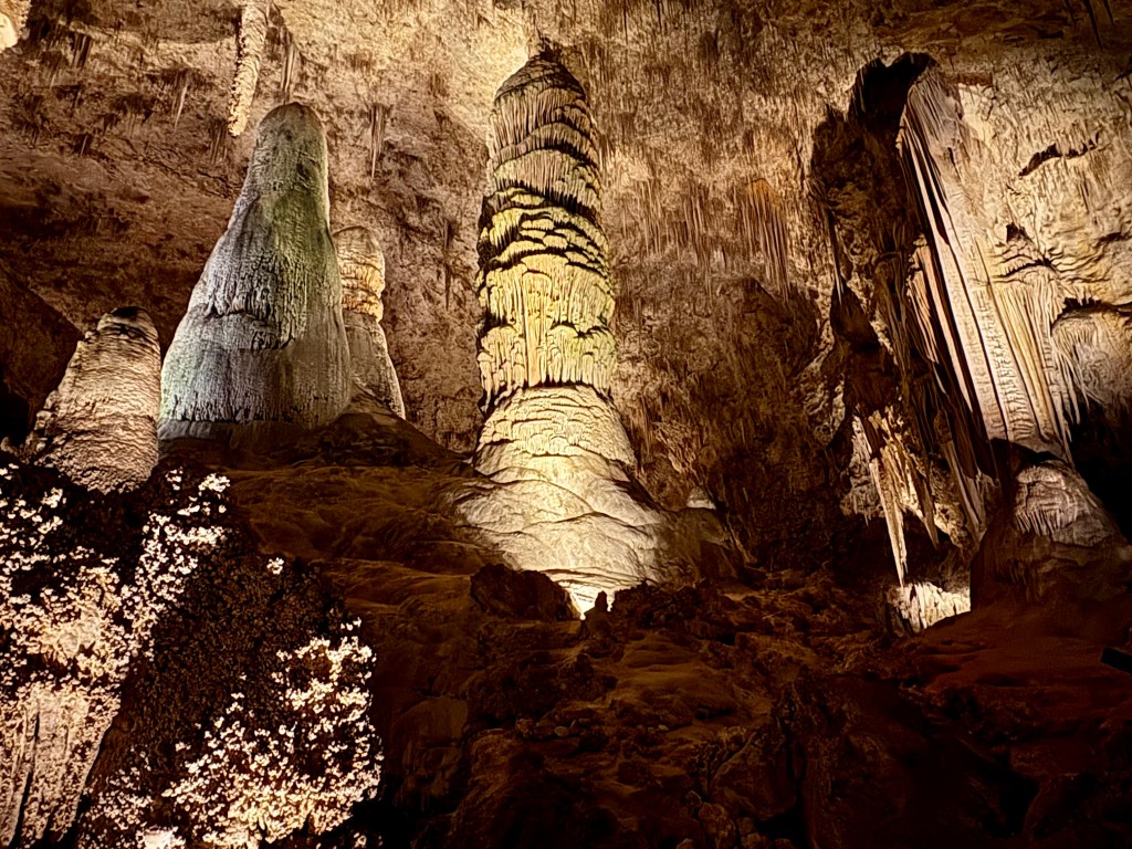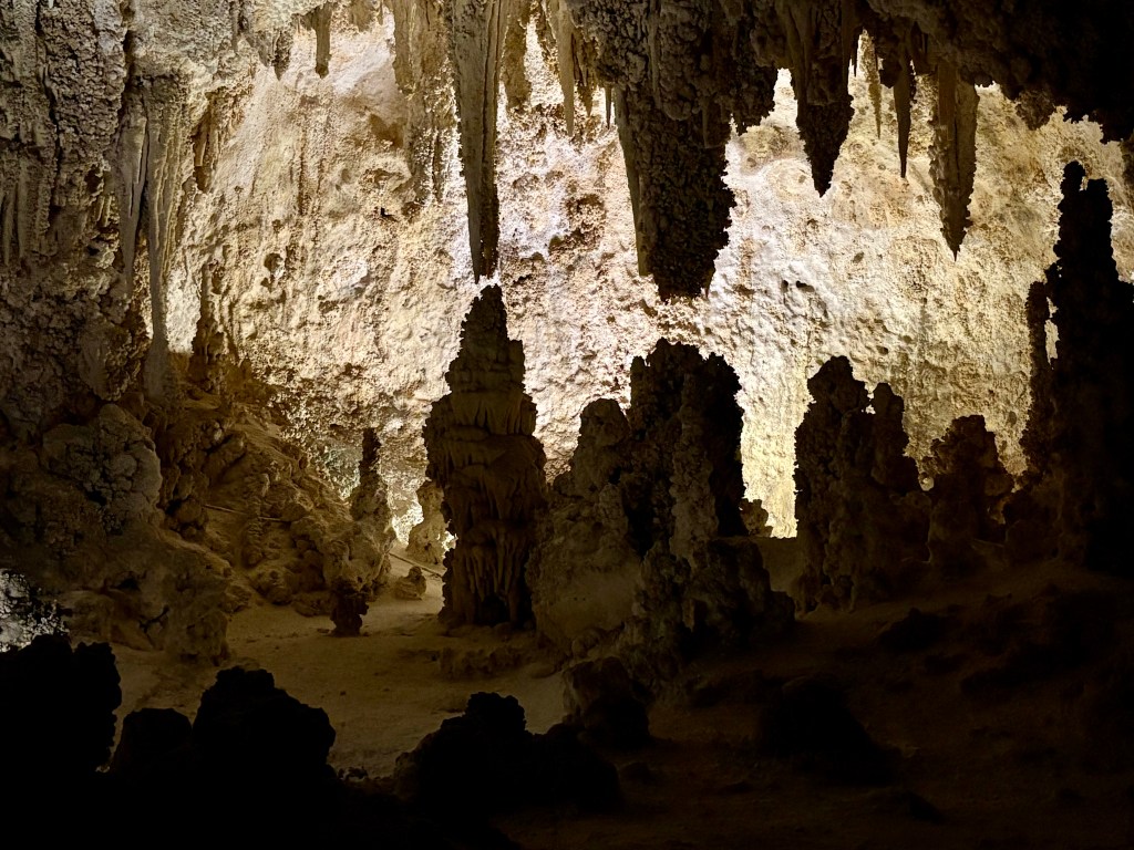 This weekend we experienced perhaps the greatest dichotomy within the National Park system. If this were an English 101 compare or contrast assignment, it would be a no brainer. First, we visited Carlsbad Caverns. Deep under the surface, dark, damp, with near constant temperature, the caverns are striking in varieties of forms that have been in the making for millions of years. It is so vast that even those with claustrophobia might not feel closed in amid the fragile rocks 800 feet below the surface. Carlsbad Caverns formed over the course of millions of years as geological conditions generated sulfuric acid that dissolved the limestone of the Capitan Reef located within an ancient shallow sea.