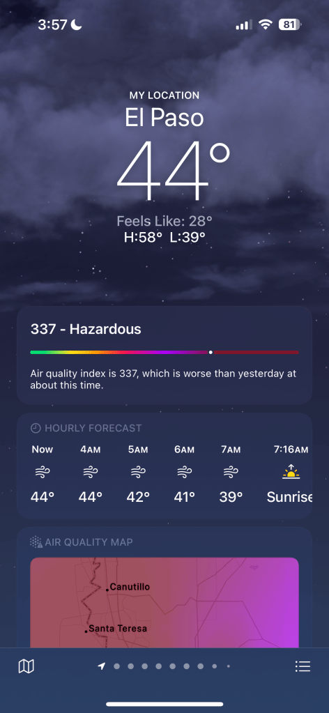 We left Big Bend and headed to El Paso, which seemed a reasonable place to spend a work week between National Park destinations. We managed to have a perfectly normal workweek, wherein we did chores, went to the gym daily, cooked meals, and did all the regular day-to-day activities of an average week.