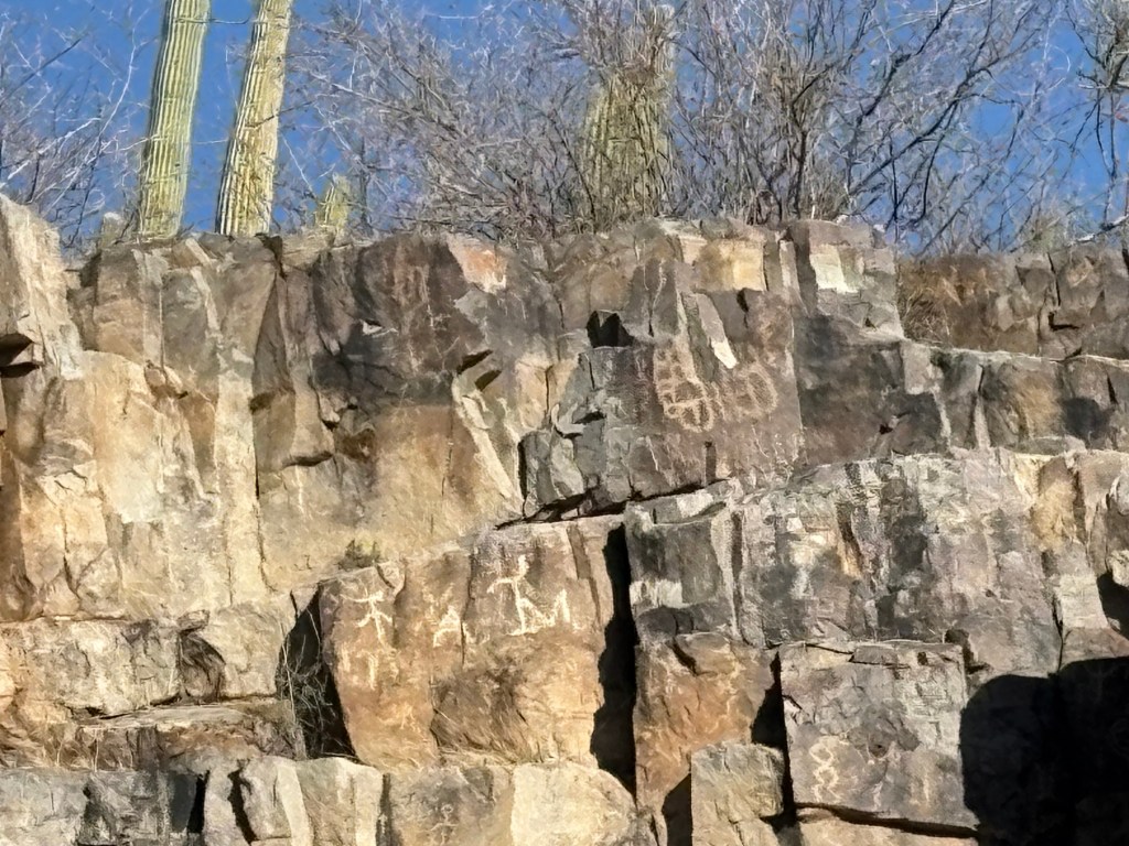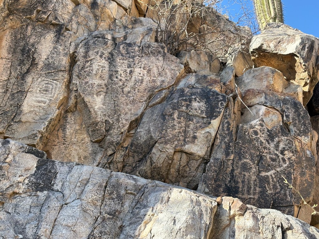For the time that we were there I was completely mesmerized by the flora and fauna. Right out the big bedroom window I could observe multiple animals and birds darting among the cacti. Hummingbirds, curved billed thrashers, Harris hawks, rabbits, quail, ground squirrels, desert rats, wrens, and woodpeckers all made appearances. Walking in the parks we got to really appreciate the majesty of the mighty Saguaro cactus. They were all so individual, many with battle scars that reminded me of manatees. We saw yucca, pricky pear, agave, and ocotillo, and more. Scenes that at first glance appear monochromatic are actually rich with variety.