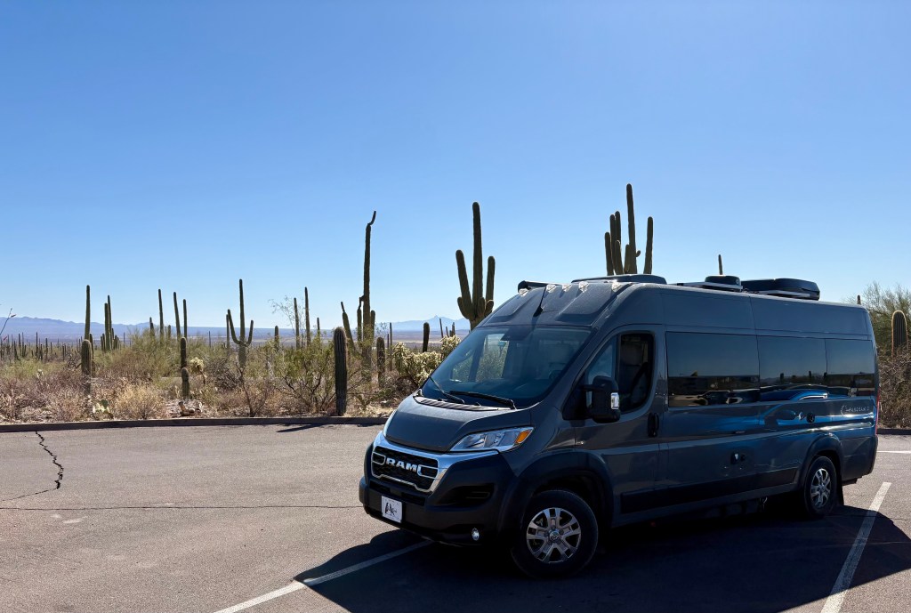 We continued our march across the country and chose to stay a week in Tuscon, Arizona, in a rental home that abuts the Saguaro National Park. In fact, to get to the home we needed to drive through a winding portion of the park itself before getting onto a rutted dirt road for the last 10 minutes of the commute. I was not crazy to take Louie back and forth on this dusty, grooved, pitted route to then traverse the snaky stretch of road. And my caution was not unfounded. There was one day that saw two rollover accidents on that park road. But we took it slowly and the van did just fine. He was a filthy boy by the end, but he handled everything perfectly.