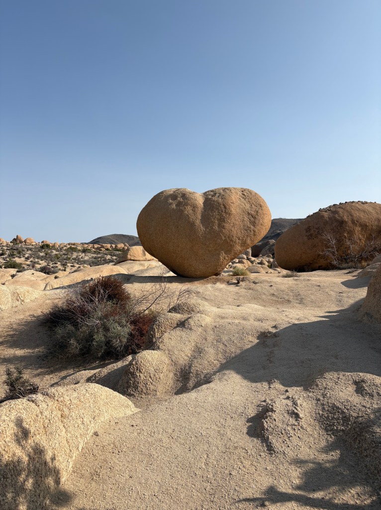 Joshua Tree is a park that really warps your sense of perspective. Distance is hard to judge. True temperatures are hard to feel when the winds are so cooling. the mountains are hard to understand, and you don’t really appreciate the size of the giant mounds of boulders until you see a speck of a person on top or a building at the base. Even trying to wrap your head around the history and timeline of the park is difficult. It is ancient. And it is beautiful. Our last stop in the park was the Keys View and it let us look down on the San Andres fault, something I’ve always heard about but had never had a chance to see from above. It was wild.