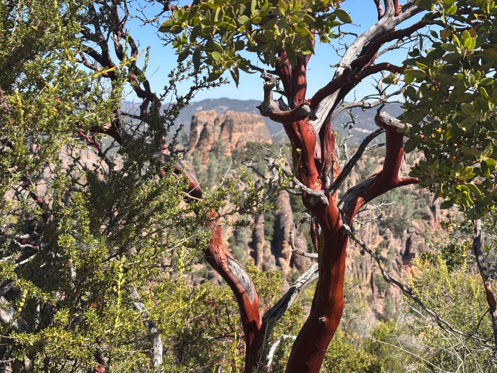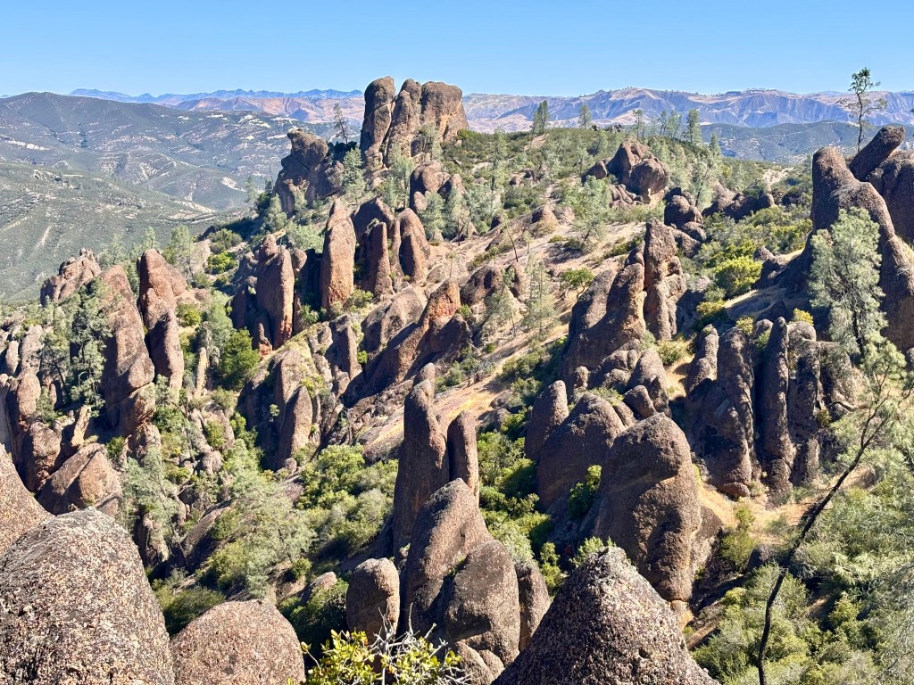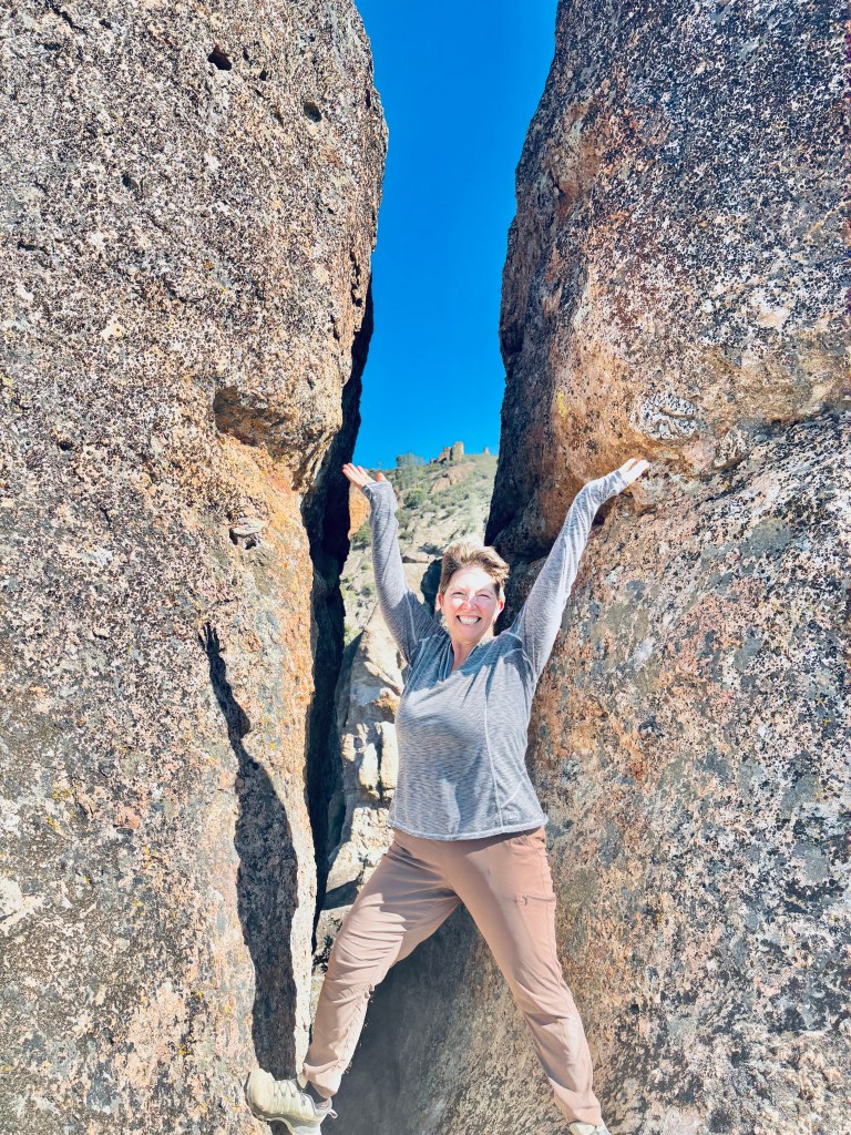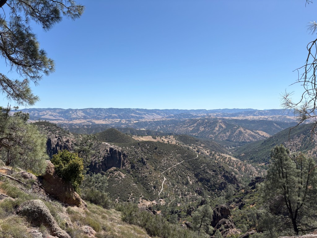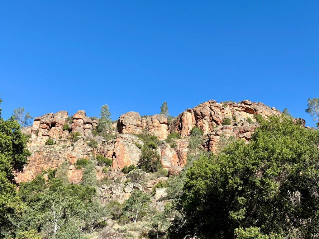 We did not originally have Pinnacles on our bingo card for this year of nomading. But when the circumstances of our stay in Salinas changed (see the Salinas post for those details) we pivoted. We camped at a super interesting and beautiful ranch within striking range of the park. We woke at 6am and drove bleary eyed and basically in pjs to the very small parking lot that was our target. Once there with our space secure, we made a pot of coffee, dressed, and prepared for the day.