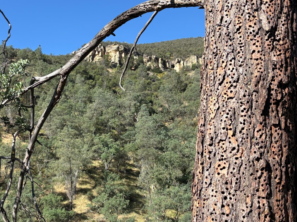 Our plan was to see condors. And we put in our best effort, climbing, scrambling, and scooting up 1800 feet of elevation for a 7 mile hike. It was probably my most technical hike to date, and I really enjoyed all of it, except maybe the last hour which started to feel tedious as I was tired and ready to be done. But my emergency supply of snacks came to the rescue and gave me the attitude adjustment I needed to do that last push. We saw a lot of incredible things, but unfortunately we did not see condors. We saw lots of vultures which gave us surges of false hope. We saw acorn woodpeckers and their impressive larders. We saw myriad songbirds and interesting flowers and plants. But no condors. They are there, though.