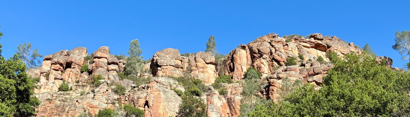 We did not originally have Pinnacles on our bingo card for this year of nomading. But when the circumstances of our stay in Salinas changed (see the Salinas post for those details) we pivoted. We camped at a super interesting and beautiful ranch within striking range of the park. We woke at 6am and drove bleary eyed and basically in pjs to the very small parking lot that was our target. Once there with our space secure, we made a pot of coffee, dressed, and prepared for the day.