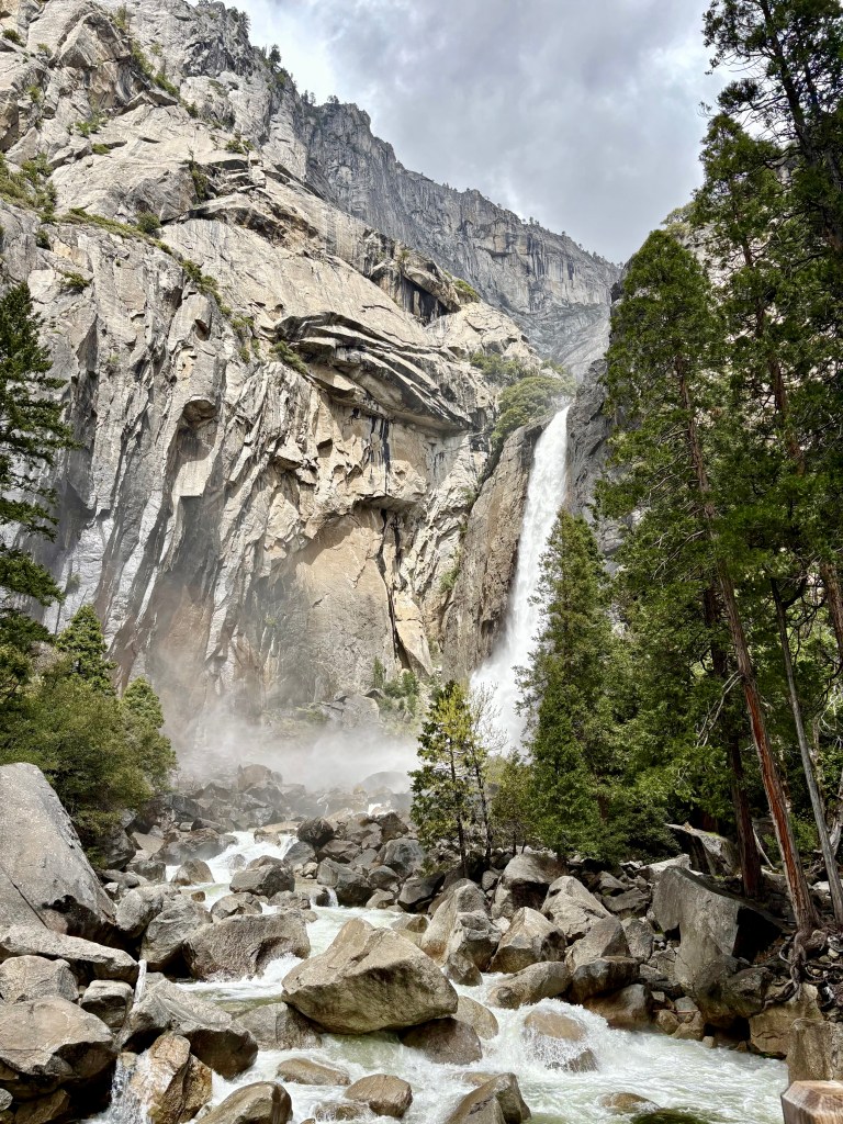 The first time I stood at Tunnel View, Yosemite brought me to tears. Again, on the valley floor, I cried in gratitude, craning my neck to look at the wild and dramatic waterfalls and the immortal, towering El Capitan. Never have I felt so small and insignificant and fleeting and been so joyful to feel so. What Yosemite does defies description though many have tried. Ansel Adams, the famous photographer, tried to capture it and made iconic art in the process. John Muir, the famous naturalist (and my kind of kooky nature nut), tried to write about it and successfully lobbied the protection for the area. But no matter how talented the messengers were, they could not – and certainly I cannot – truly begin to relay its majesty or explain how it thrums the very fibers of your soul so that you are vibrating with the wild and ancient world around you. The waterfalls, the granite walls, the clearly defined path of glaciers. The river. The meadows. The millions of years evident before you. The thousands of years present in some of the trees. It’s like nothing else I’ve ever seen.