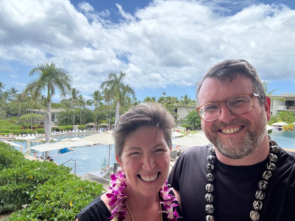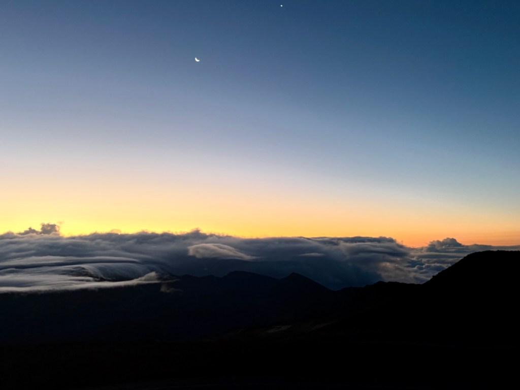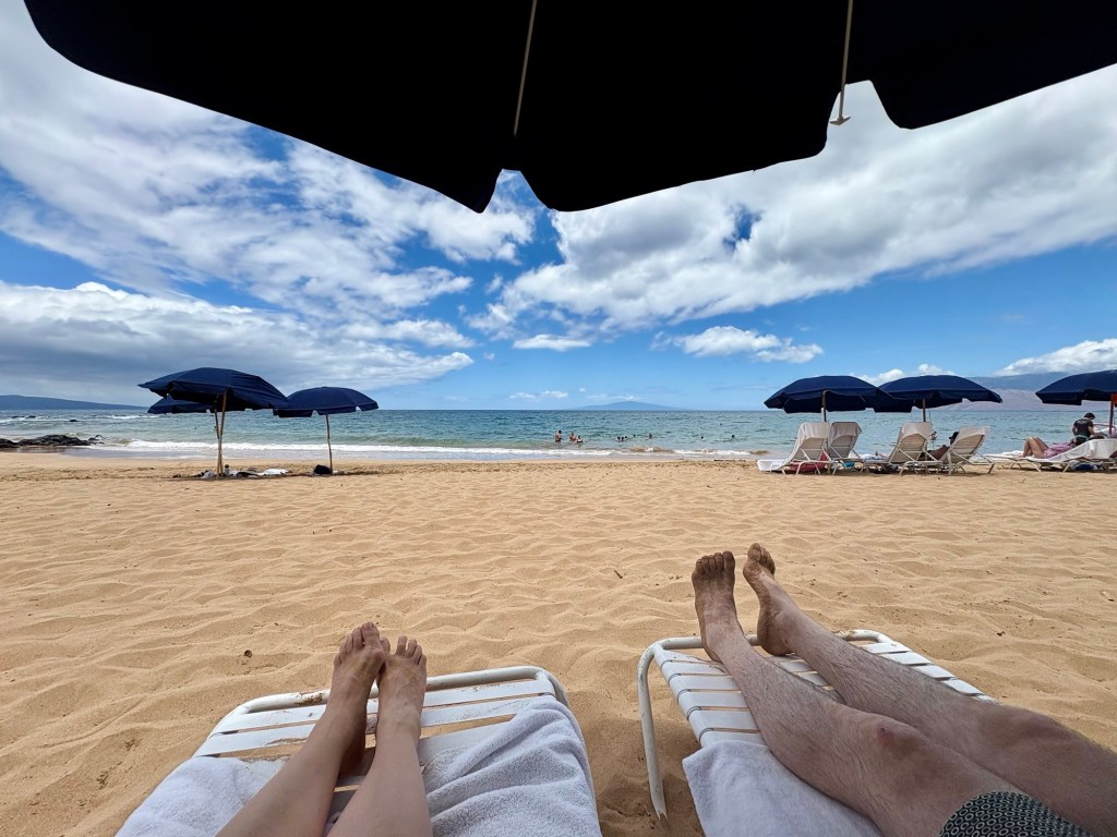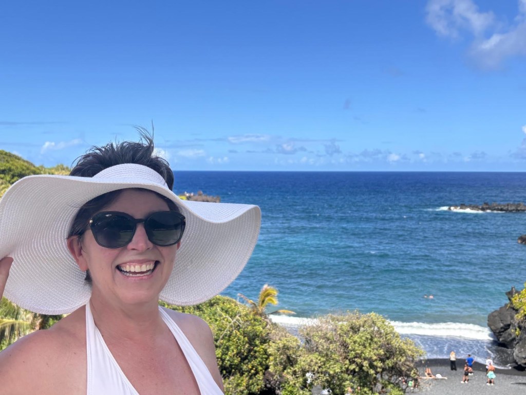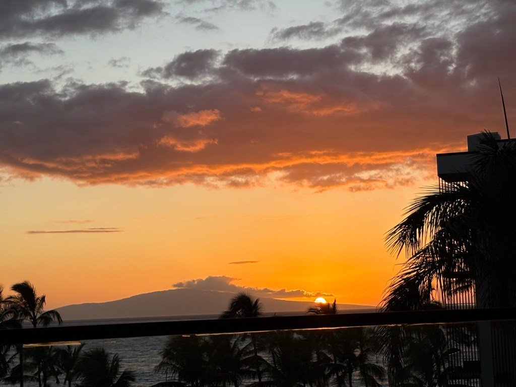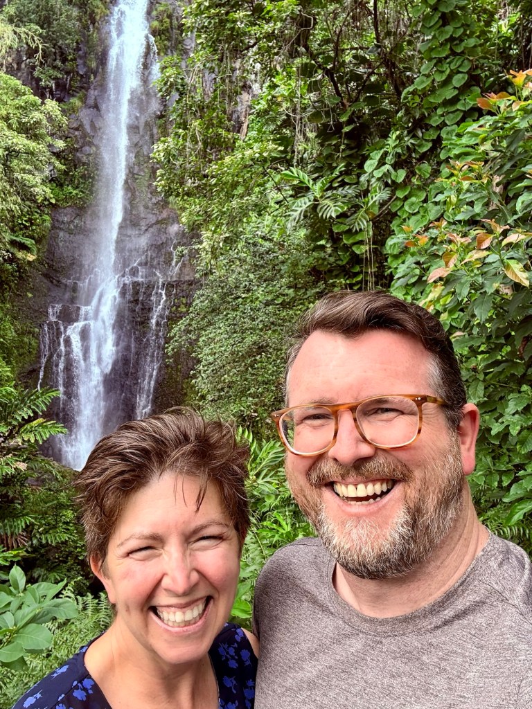 Larry and I intended to go to Hawaii for our 25th wedding anniversary, but thanks to Covid (and honestly how cost prohibitive it is when coming from the east coast) we postponed it until now. Leaving from San Francisco and using credit card points made it possible to enjoy this short vacation packed with luxurious goodness and with a great balance of activity and relaxation. (As funny as it seems this is actually our first actual use of vacation days this year.) We drove the road to Hana, where we saw waterfalls, black sand beaches, red sand beaches, a lava peninsula, gorgeous scenery, and at the end, a stunning — and muddy — hike through a bamboo forest up to a mighty waterfall. The next morning, we woke at an outrageous 3:30 am to be able to get to the summit of Hakealea, some 10,000 feet up for a sunrise view like no other. We woke the next day a couple hours later, but still pretty early as we had to meet our boat at 6:45 for a snorkeling and sailing adventure that had us with spinner dolphins, turtles, and countless fish.