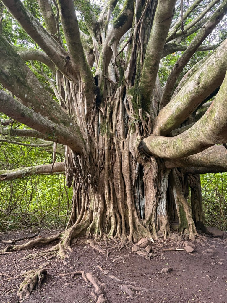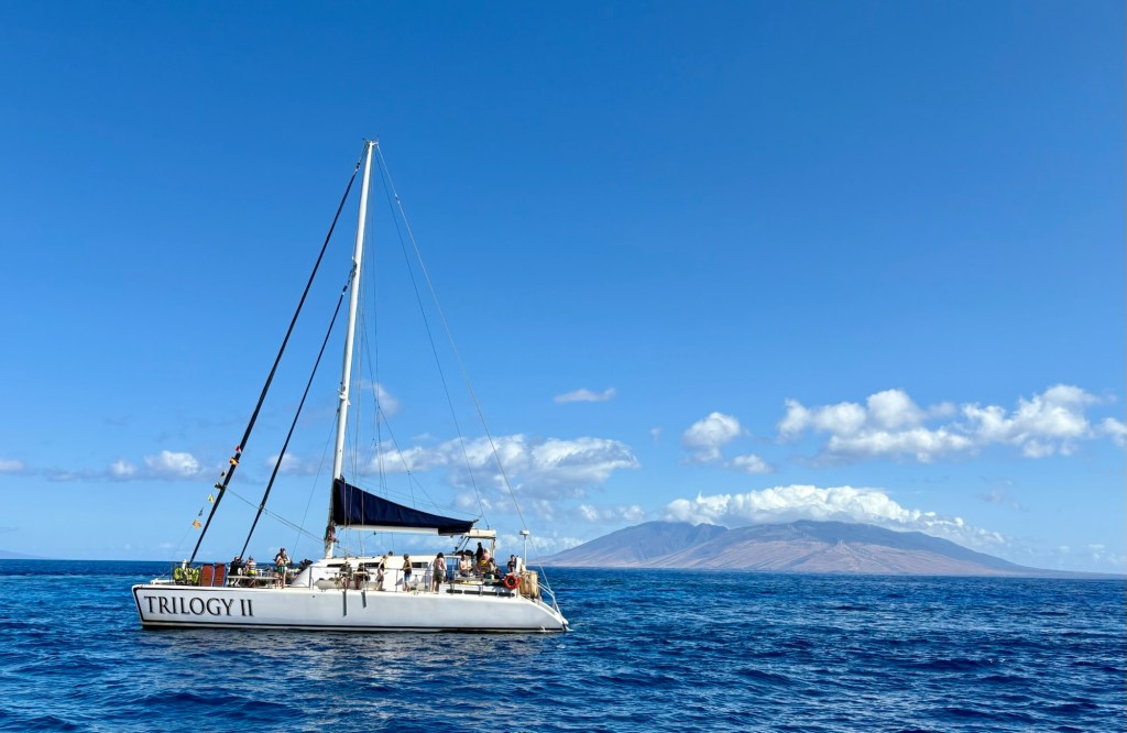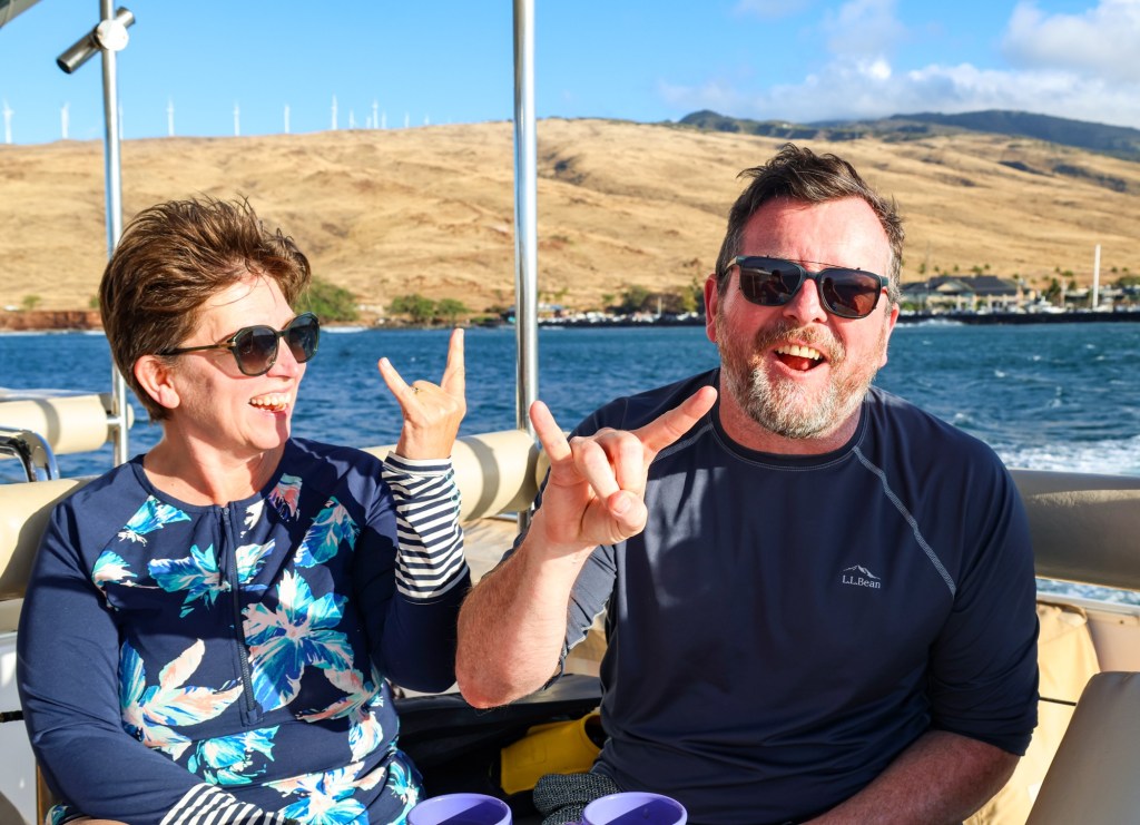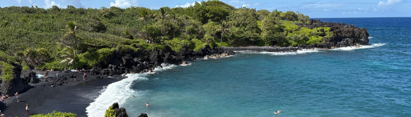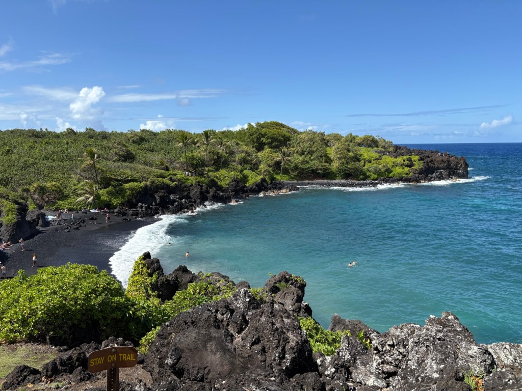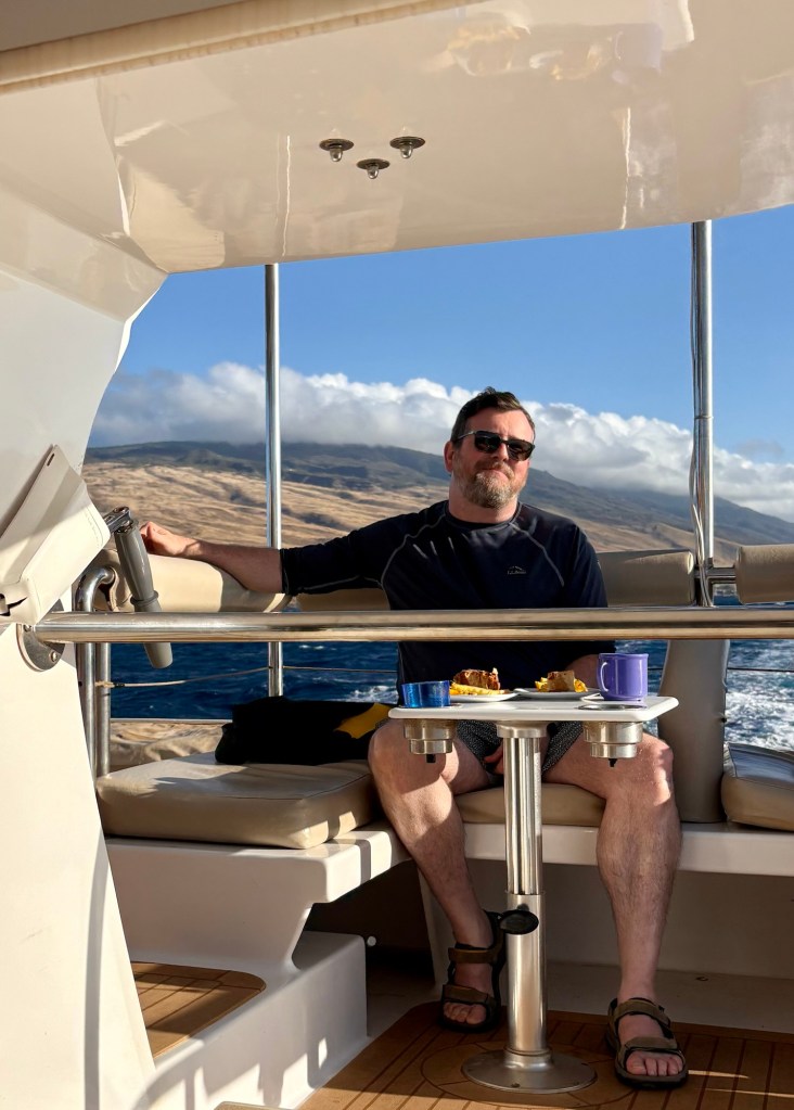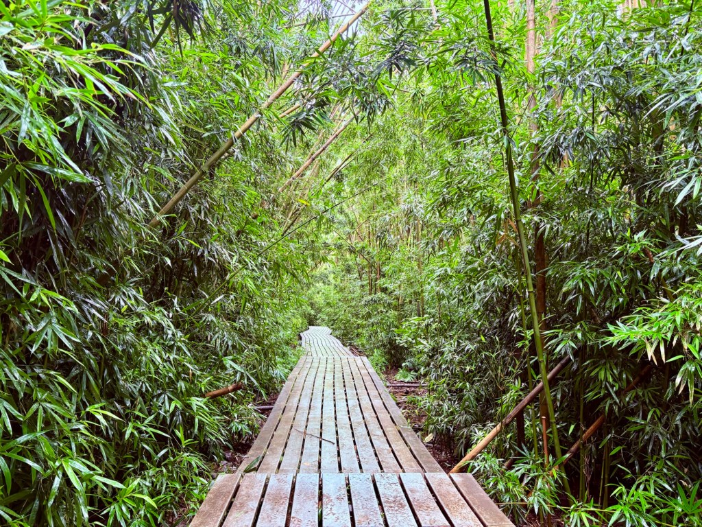 Larry and I intended to go to Hawaii for our 25th wedding anniversary, but thanks to Covid (and honestly how cost prohibitive it is when coming from the east coast) we postponed it until now. Leaving from San Francisco and using credit card points made it possible to enjoy this short vacation packed with luxurious goodness and with a great balance of activity and relaxation. (As funny as it seems this is actually our first actual use of vacation days this year.) We drove the road to Hana, where we saw waterfalls, black sand beaches, red sand beaches, a lava peninsula, gorgeous scenery, and at the end, a stunning — and muddy — hike through a bamboo forest up to a mighty waterfall. The next morning, we woke at an outrageous 3:30 am to be able to get to the summit of Hakealea, some 10,000 feet up for a sunrise view like no other. We woke the next day a couple hours later, but still pretty early as we had to meet our boat at 6:45 for a snorkeling and sailing adventure that had us with spinner dolphins, turtles, and countless fish.