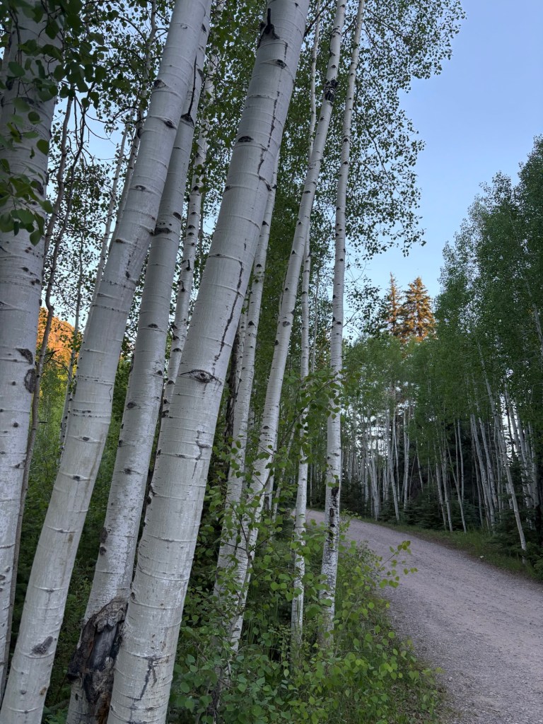 Telluride is a picturesque town in a scenic box canyon, surrounded by mountains, lush and green, snow dotted, even in June, with waterfalls sluicing vertically down the slopes. It is home to the Telluride Bluegrass festival, an event that’s been going on for over 50 years. For as long as Larry has known music, he’s wanted to attend this festival, but it’s not an easy one to get to, especially from the east coast. This year, we made it a priority to attend the festival. We bought our tickets in December and we made our plans. The festival runs Thursday through Sunday, but our research told us that if we wanted a chance at a decent campsite, we would do well to arrive on the Monday before, so that’s what we did.