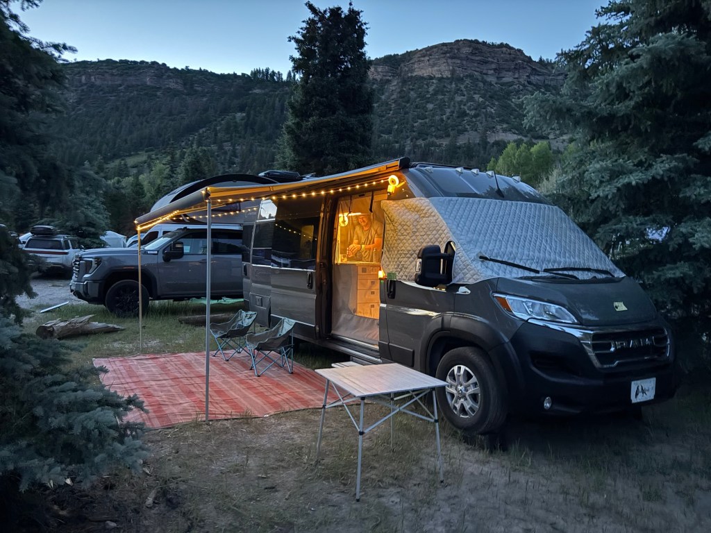 Many people tent camp, and many others rent homes or hotel rooms. But we were excited to really put Louie through his paces. Dry camping for a week felt like a challenge. Would we run out of water? Would we run out of electricity? Would our tanks fill or any systems fail? We did a lot of careful planning and prepping, and we were loaded down with a lot of provisions by the time we rolled into the campsite. The campground we chose (The Mary E Illium campground) was about a 15 minute shuttle bus ride from the town, and the shuttles didn’t start running until Wednesday, so we knew we would be hunkering in place for at least the first couple days. We were fortunate in that the campground had porta potties, potable water, and even for the first time, showers. There were also dumpsters for trash and for recycling. I was very pleased to see that they serviced the potties every day, so things were always clean and well supplied.