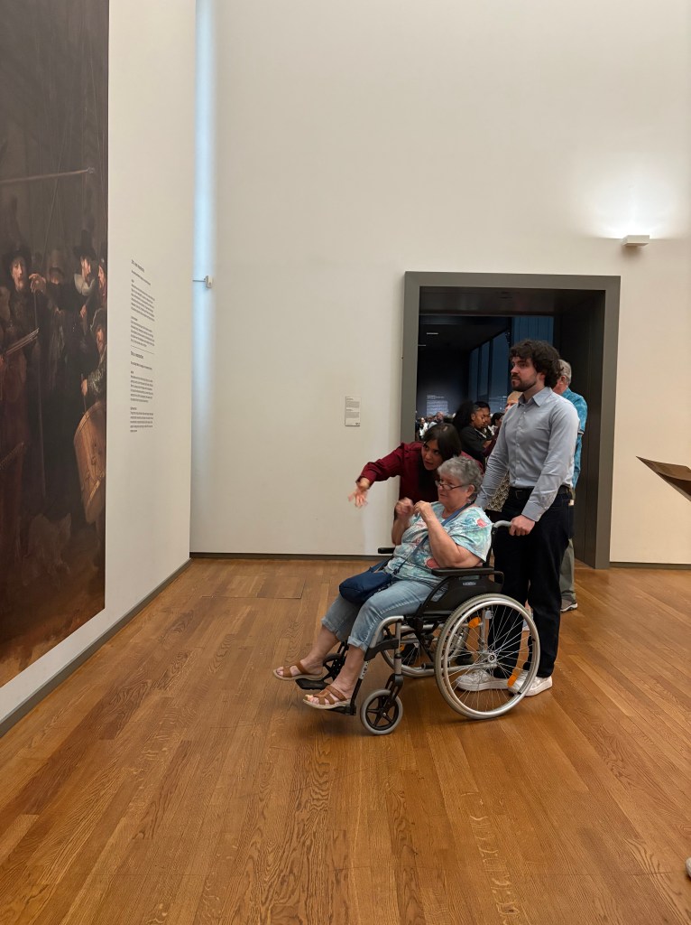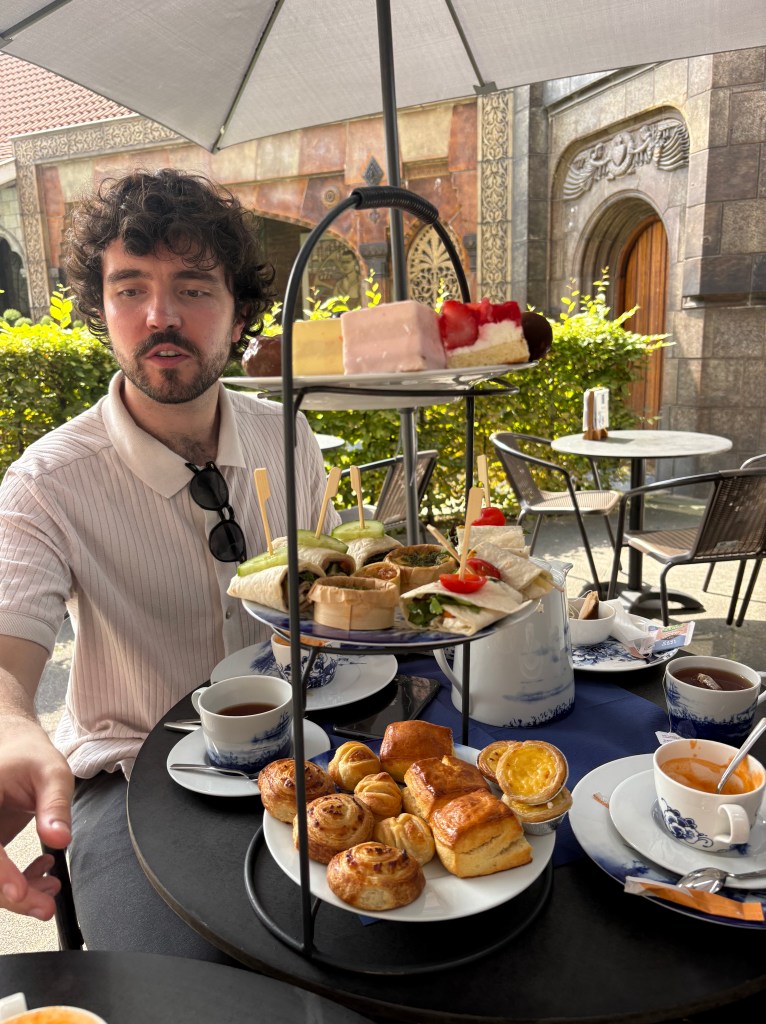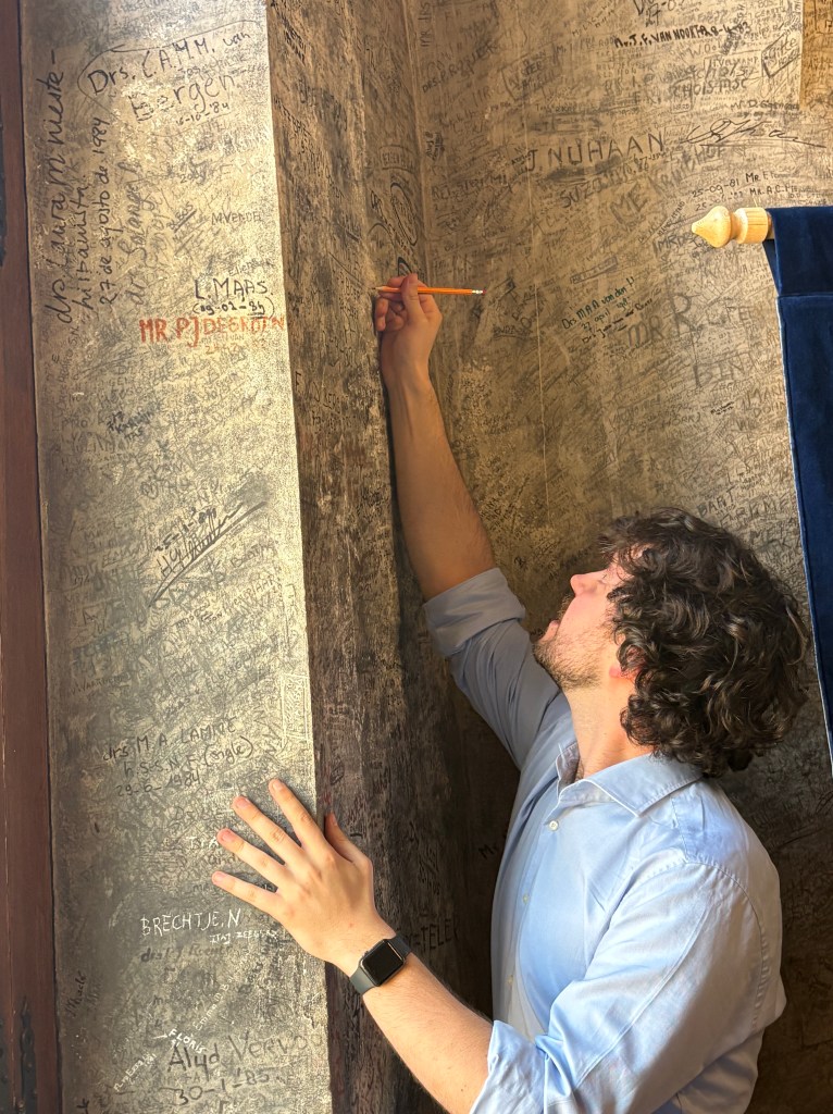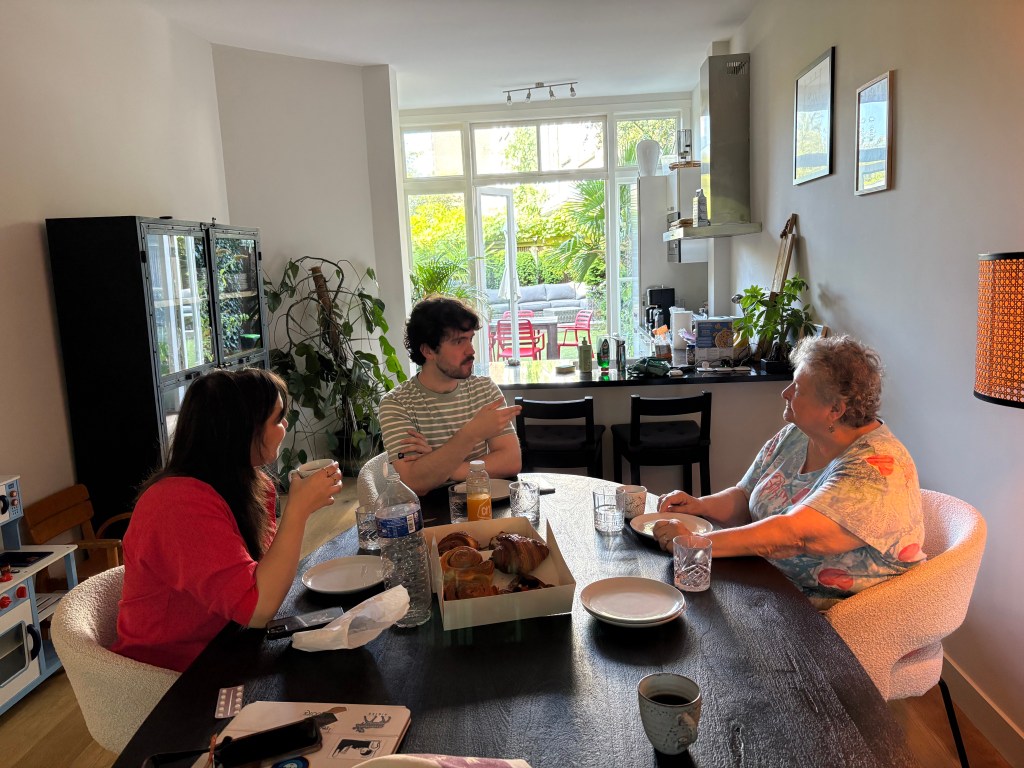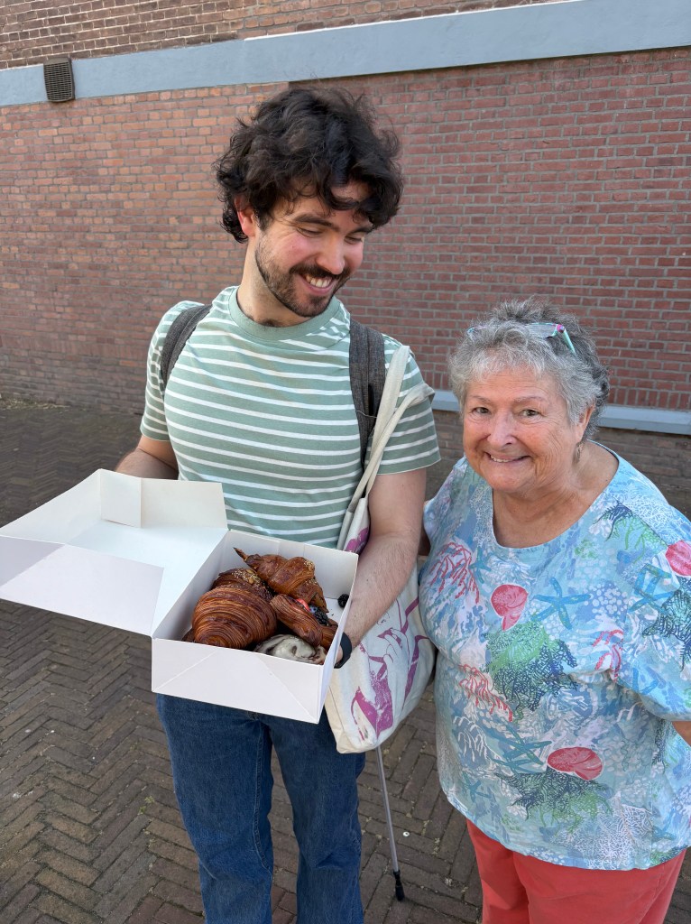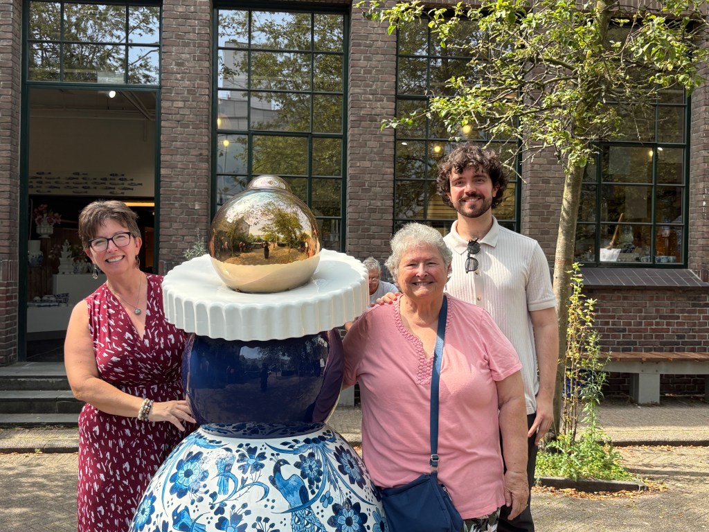 We rented an airbnb less than 15 minutes from E & A’s home. It had a big couch that sat us all comfortably as we played Mario Cart. It had the luxury of a large private garden with a large gathering table and a large patio sofa. It was on the ground floor with no stairs, and it was in a great walkable neighborhood with a great little shopping strip just one block over. It really worked well. Unfortunately, mom was fighting a cough and cold for the entire trip. And she also got injured when a clueless individual stomped on her foot in passing and managed to remove her big toenail. Mom was a trooper, though, and she didn’t let any of that stop her from having a great time with her favorite grandson and his favorite person. We went to museums and restaurants, we played lots of Tuck, Geoff, and Mario Cart. We really enjoyed our time in the Hague. We took a day trip to Leiden to see Elliot sign his name in the prestigious Sweat Room. We took another day trip to Delft to tour the pottery factory and enjoy a High Tea in the courtyard. We also spent a day in the Hague at two museums with a picnic lunch of delicious sandwiches in between the Girl with the Pearl Earring and MC Escher.
