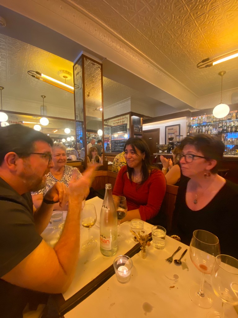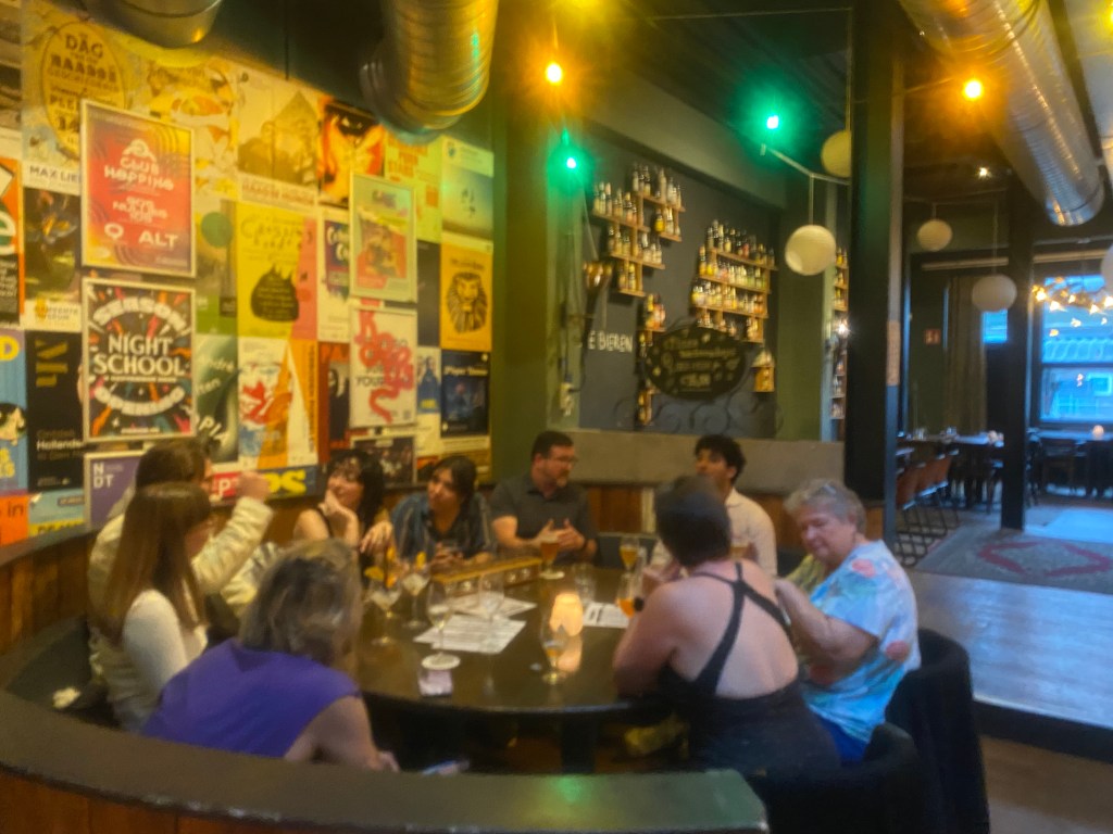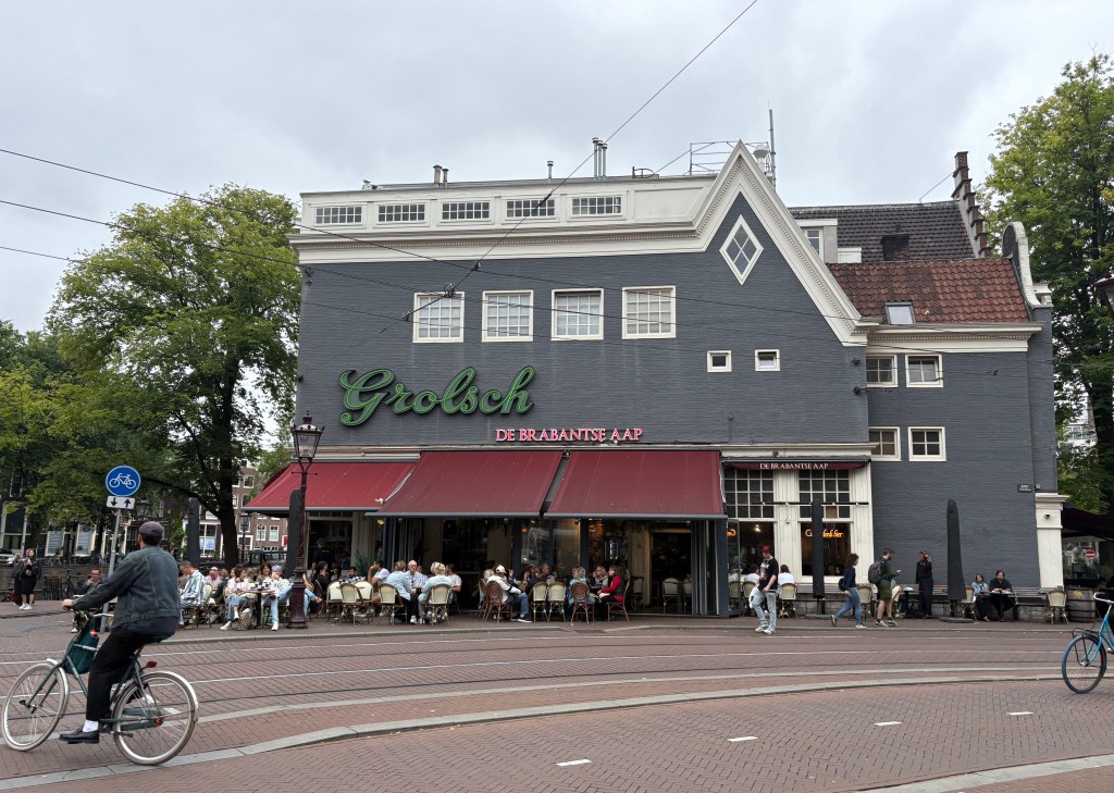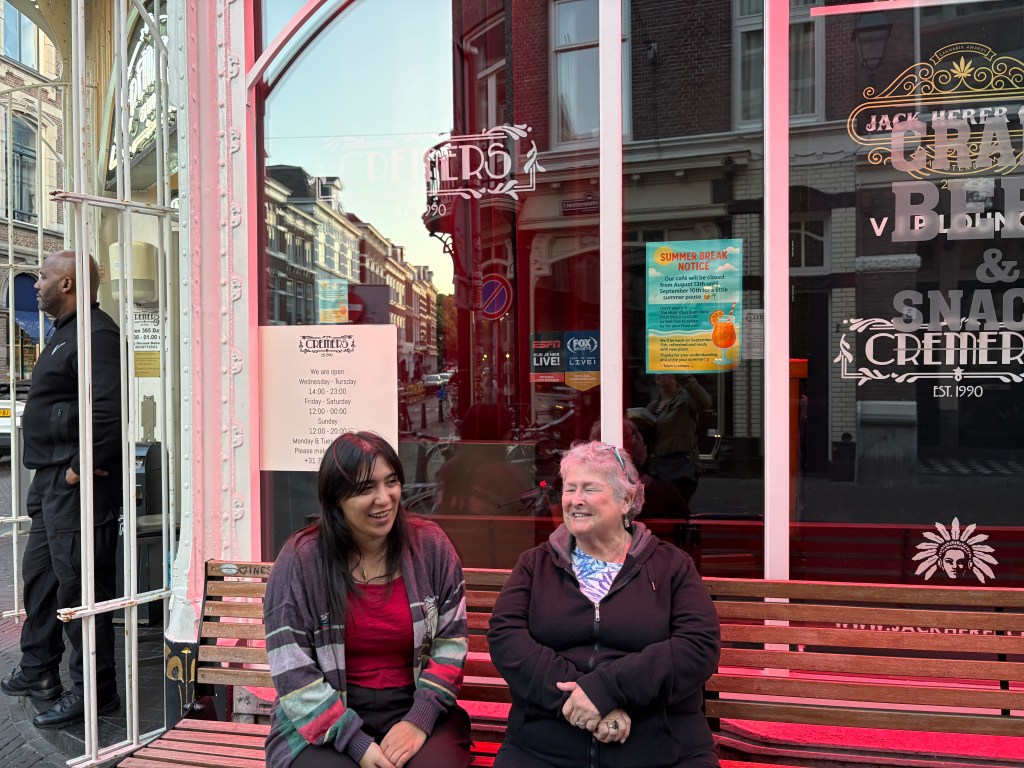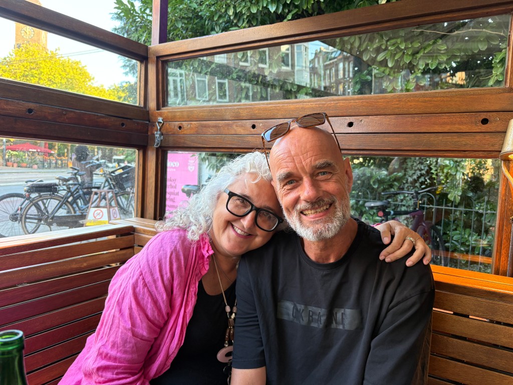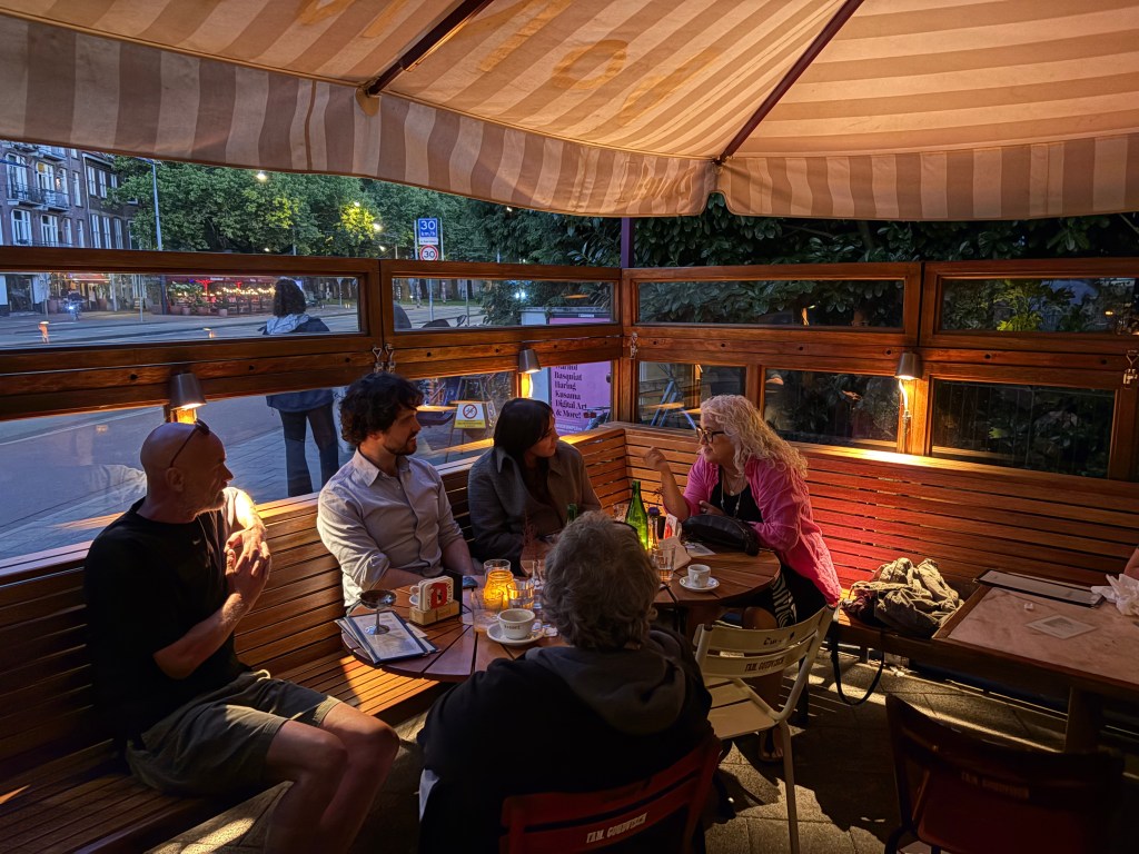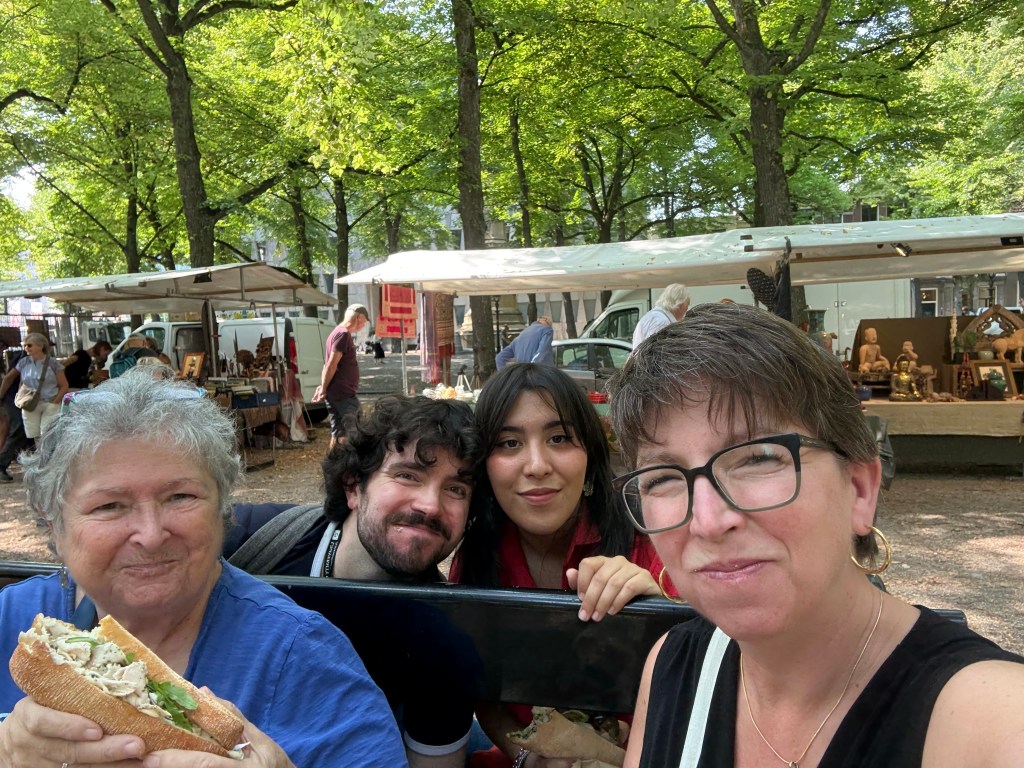 The same Sunday that Larry made it back to camp in NH, mom and I — escorted by Elliot — headed into Amsterdam for our last two nights in the Netherlands. Alexa was also feeling poorly so stayed home. Elliot walked me one of the campuses of the University of Amsterdam, his new employer. Then Elliot and mom went off to the Van Gogh museum. Amy and I toured a brothel. We all met back up at our favorite spot to people watch, which we’ve dubbed Schadenfreude Ecke. And then we headed to our favorite Indonesian restaurant for a delicious rice table (Elliot’s treat!) The following day we went to the Rijksmuseum , had lunch at LouieLouie, took a rest back at the hotel, before hitting the casino on our way to dinner at Bonnie’s with Amy and her sweetie, Huib, joining in for the festivities.