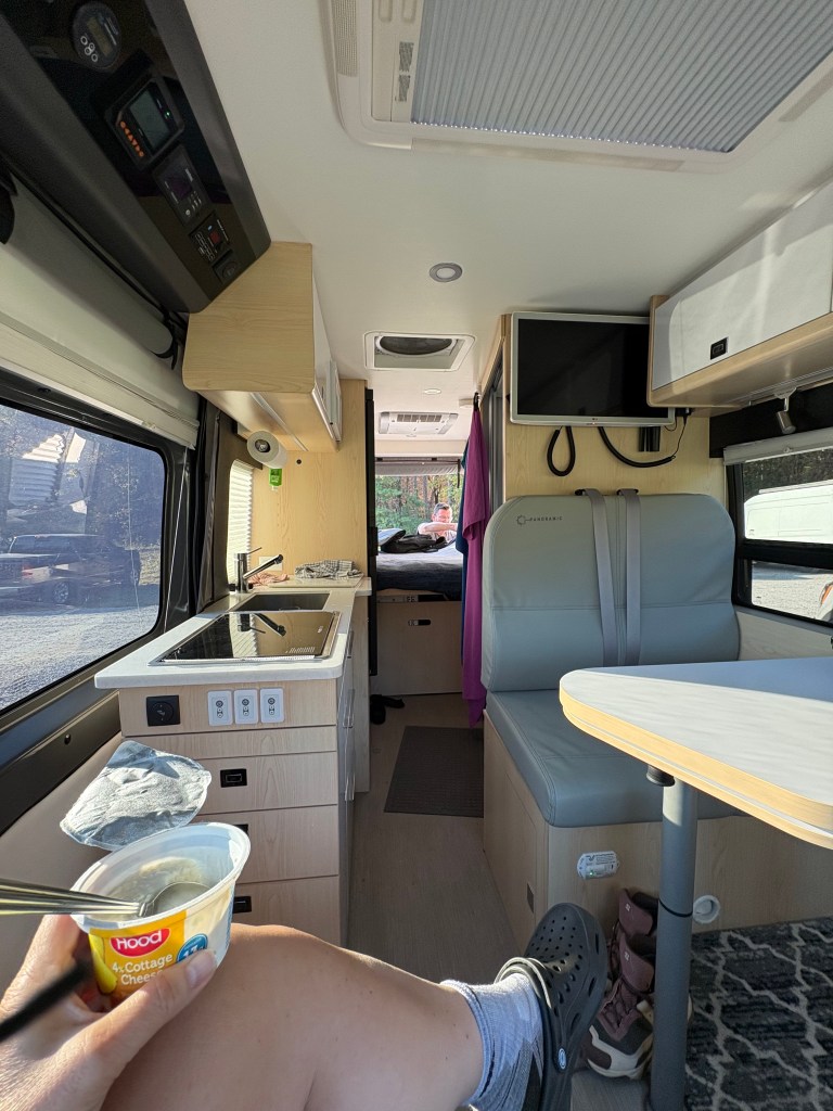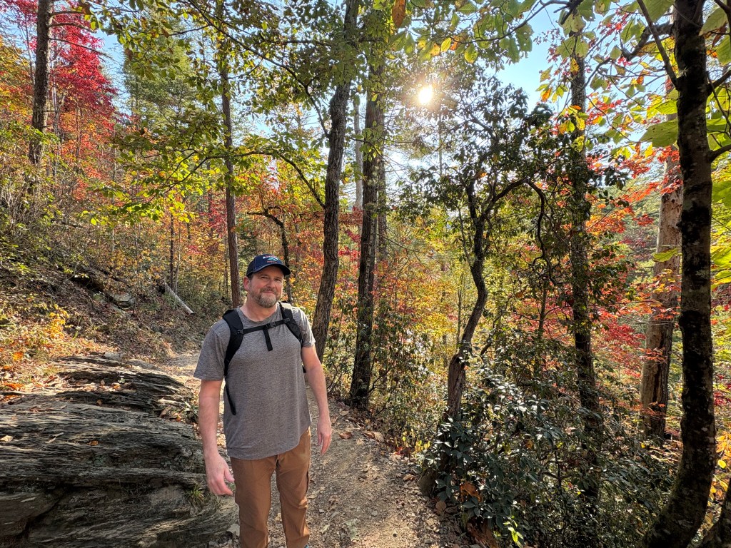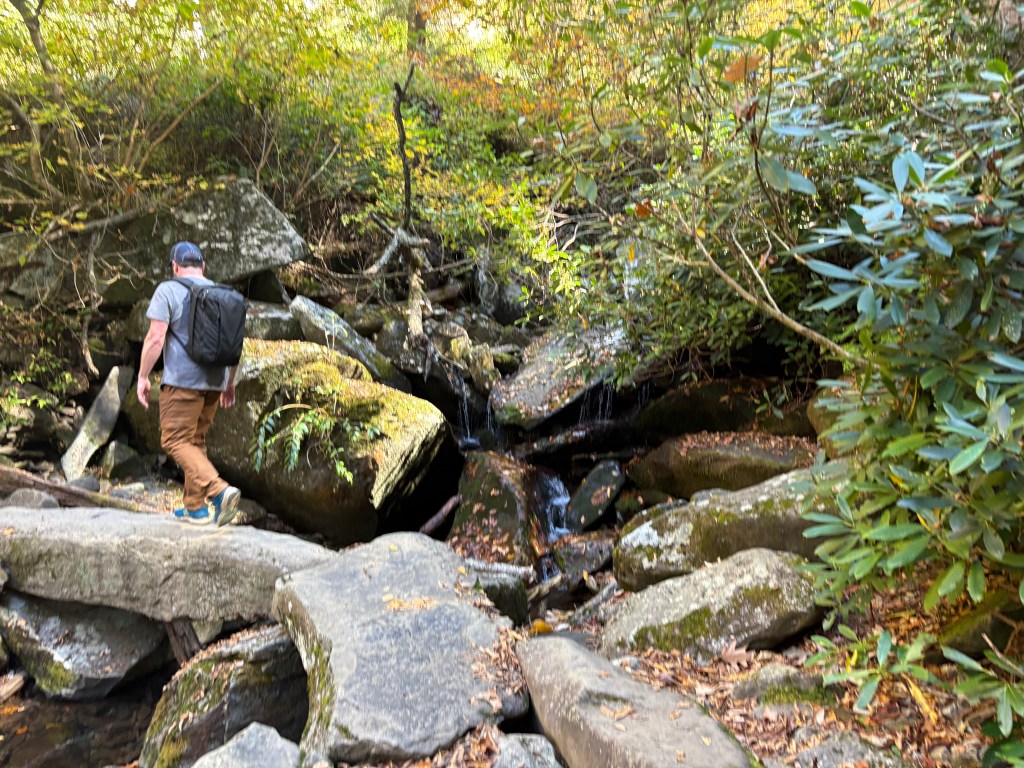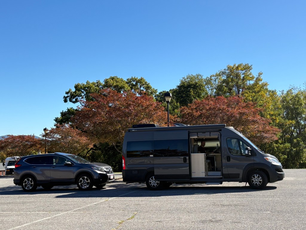 After returning from St Maarten, we closed the camps and tucked them in for the winter. Then our winding path from New Hampshire to Florida brought us down to Massachusetts (to say bye to Tam and the pups), then Pennsylvania (for a day visit with Milan and Sadie), then to Virginia for a workday, and then, finally, to the beautiful state of Tennessee for a visit in three parts over two weeks. We were delighted to be camping in Louie again, and we made the most of it as we picked our way south. We did take a different approach with this repositioning. Previously we only traveled on the weekends or when Larry wasn’t working. This week, we were moving two vehicles over the course of several work days. This meant we both drove for a few hours in the morning, then parked so that Larry could work for the day. Then we would drive a few more hours in the evening to get to our next camping spot. It got easier as the week went on, and while I don’t know that I would choose that method of travel for all our adventures, it certainly worked to get us positioned to enjoy the Great Smoky Mountains.