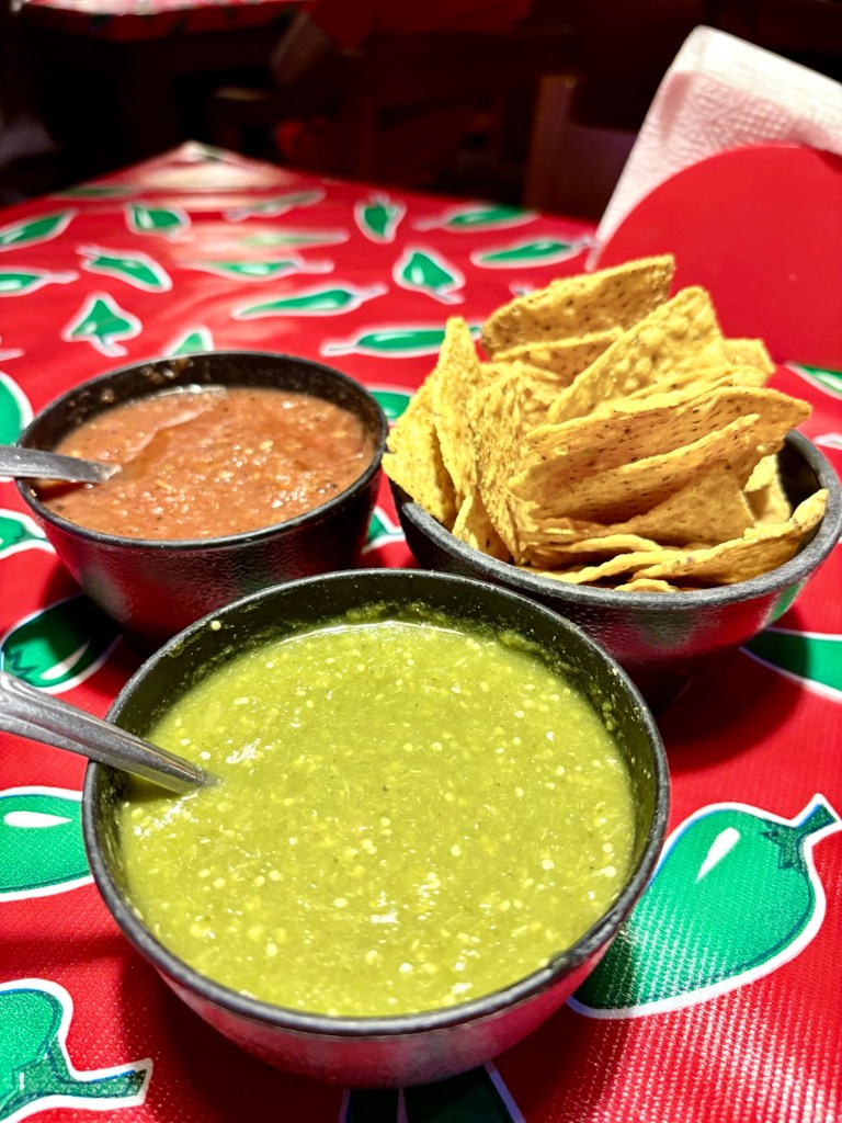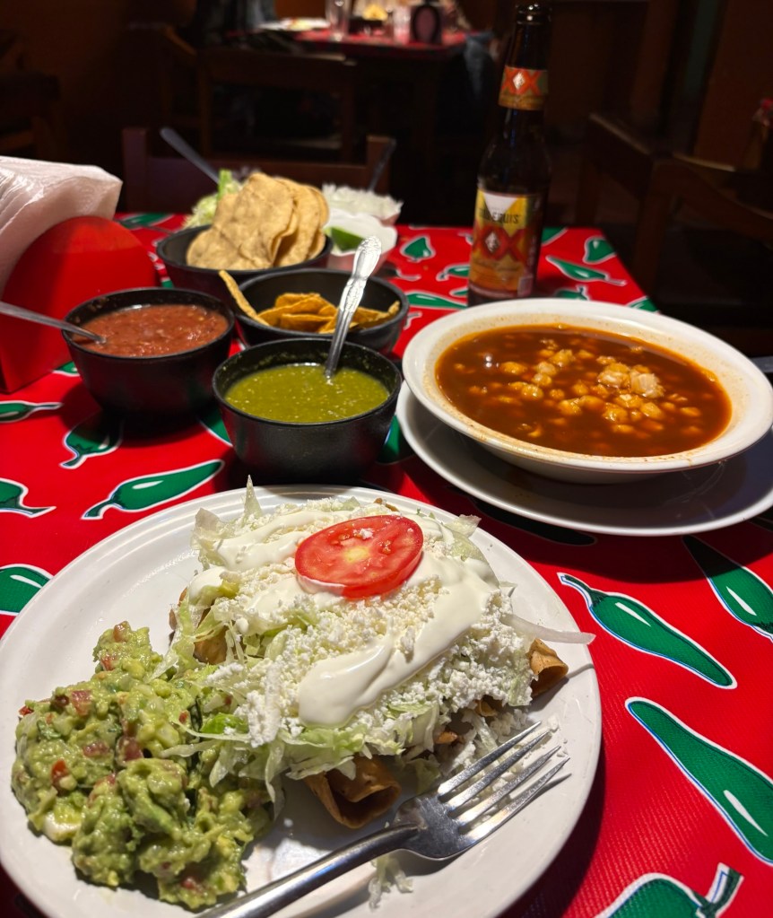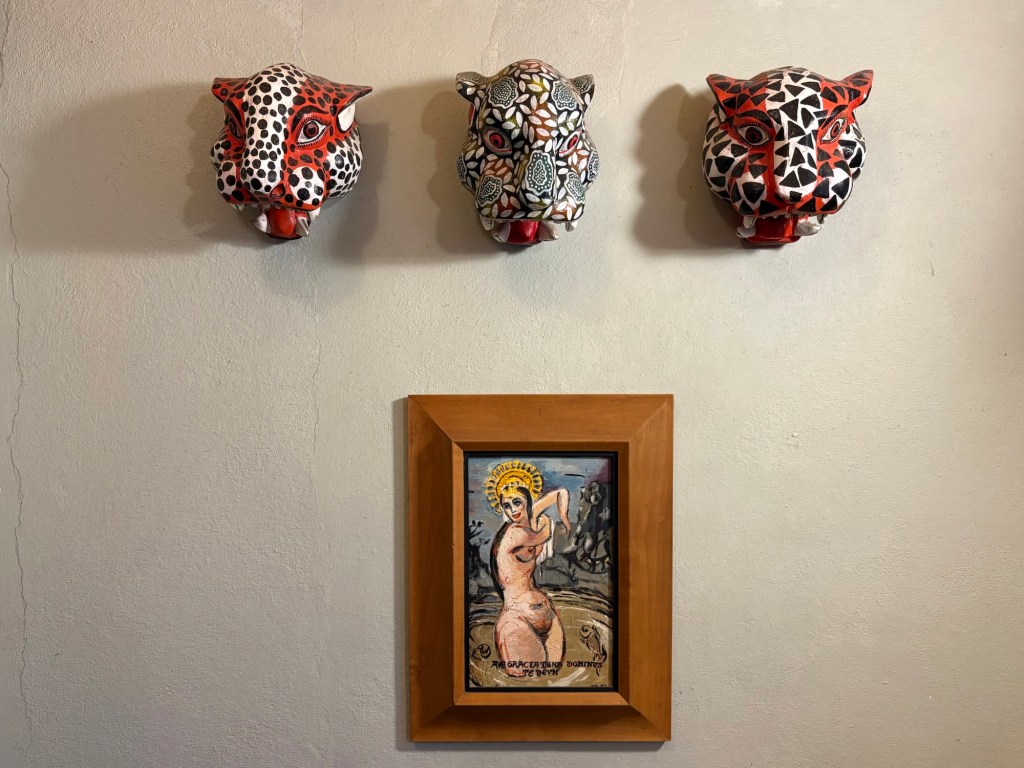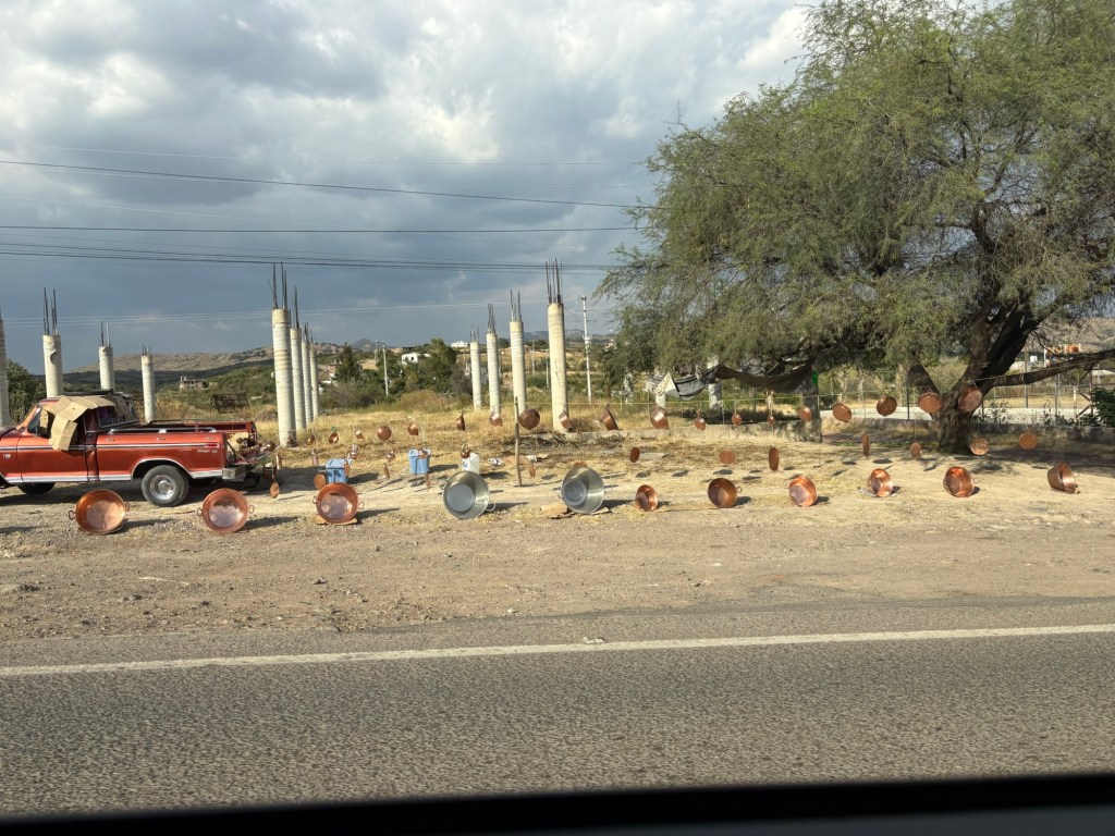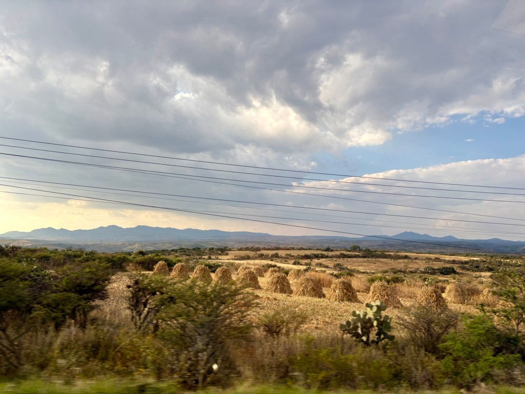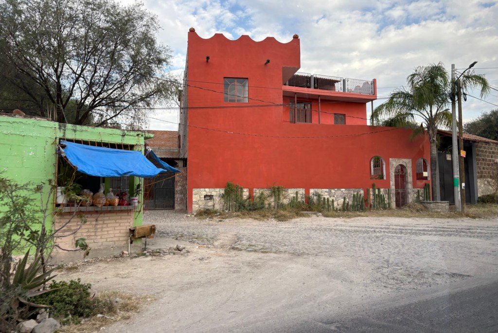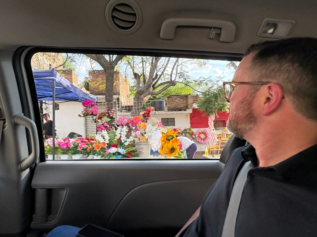We arrived in San Miguel de Allende (elevation over 6000 feet) on a big feast day: Día de los muertos, Day of the Dead. It is a very important holiday, one where ancestors are honored and remembered. Marigolds are everywhere, and the whole town is bedecked in colorful banners, flowers, and candles. It was absolutely magical. We wandered around the historic downtown enjoying the vibes, listening to the mariachi music, watching all the people — so many of them in costume and face painting. The cobblestoned streets and high narrow sidewalks were filled with families. It was beautiful. We ducked into a random restaurant for pozole and flautas, then continued our stroll. The streets were getting more and more crowded. The mass at the church was spilling into the courtyard. The musicians were performing on the stage. It was such a festive atmosphere.