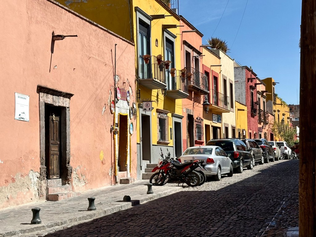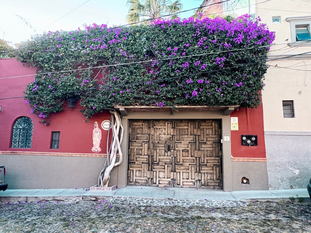 San Miguel de Allende was founded in the 1500s. Many of the colonial era buildings are from the 1700s. It is a hilly labyrinth of cramped, cobbled streets, ancient and magical, colorful and welcoming, with enchanting shadows and inviting alleyways. Textures here are tile, stucco, rough-hewn wood, and well worn stone. Sounds here are fireworks, barking dogs, parades, mariachi music, laughter, construction, church bells, and many vehicles in various states of disrepair. Colors here are vibrant. Bougainvilleas are everywhere and in every shade, attracting butterflies and hummingbirds. Bright pops of purples and pinks against the ochre, burnt umber, sienna, and rust buildings that are tightly placed, with often only narrow, single-filed, uneven stone sidewalks separating the inside of the building from the motor scooters, buses, and cars wending their ways through the bumpy streets.