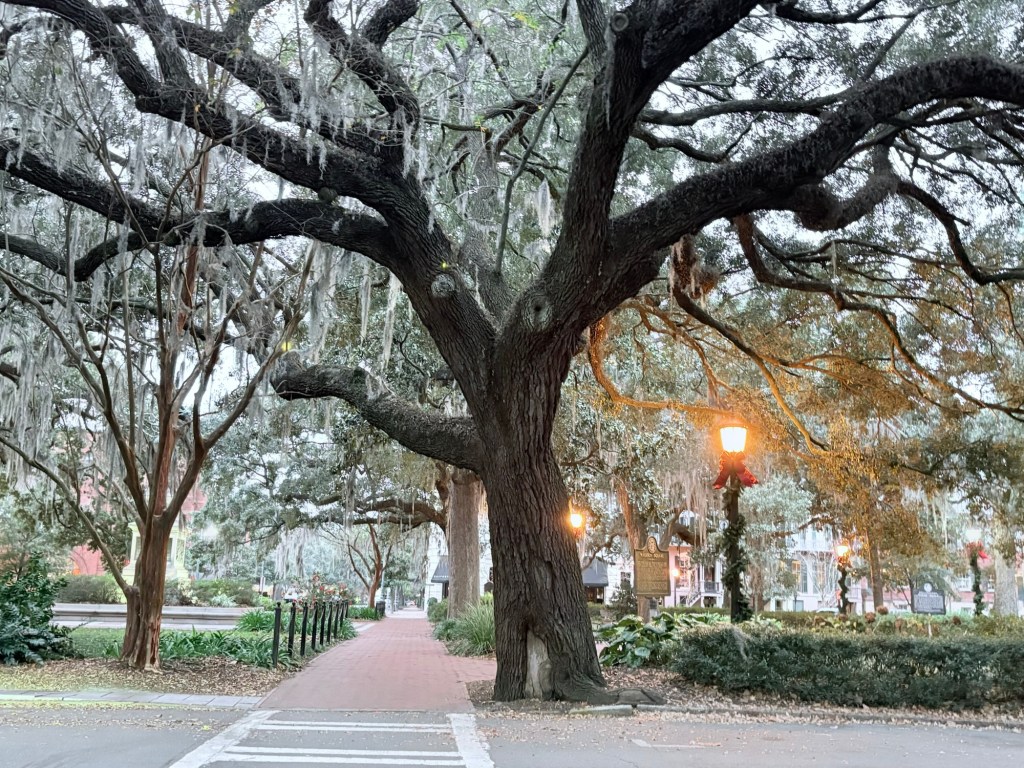 We found an adorable little camping site a short drive from the downtown on a working farm. We ended up staying three nights. Working during the day and exploring Savannah in the evenings. While the city definitely took a hit over covid — there were a lot of businesses papered and shuttered, and maybe more unhoused folks than I remember from last time — it was still as charming and enchanting as ever. Tidy, walkable, framed with ancient oaks and Spanish moss, there’s something very special about Savannah. We wandered from square to square, admiring the homes, and appreciating the holiday decor. We ate and drank very well while there, and sparked up conversations with strangers effortlessly.