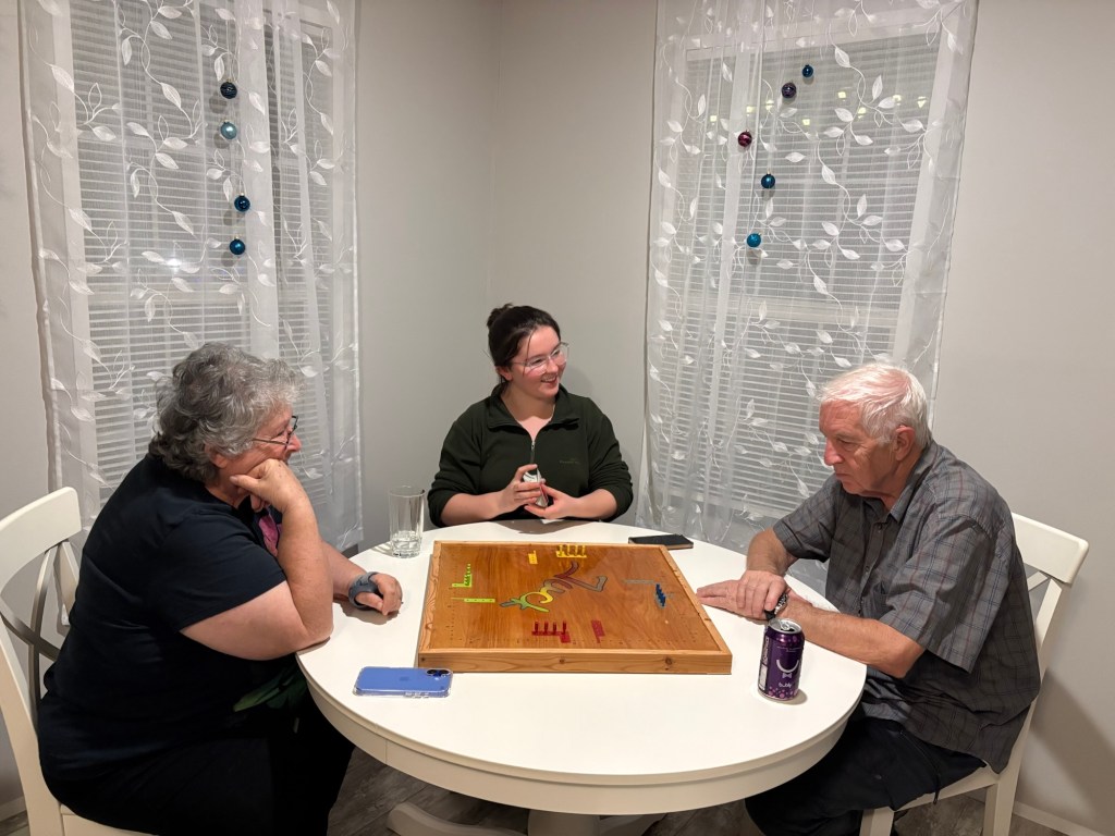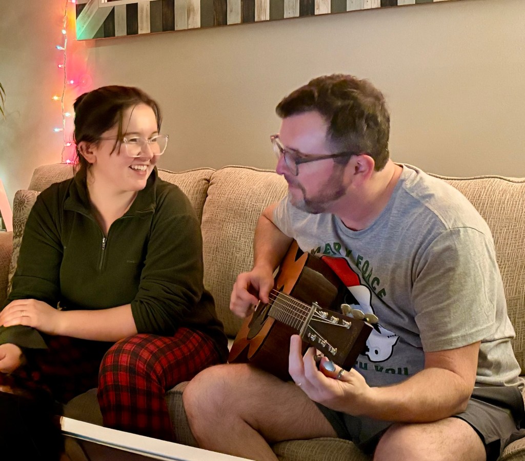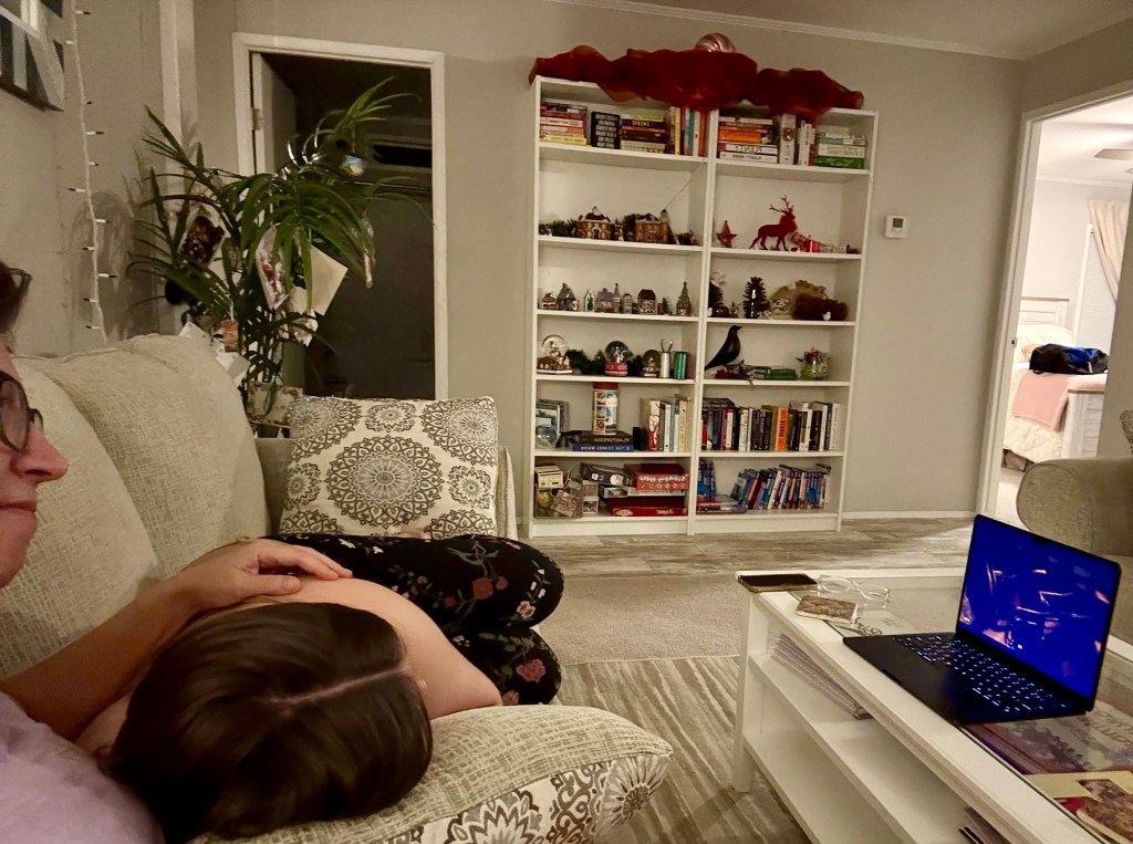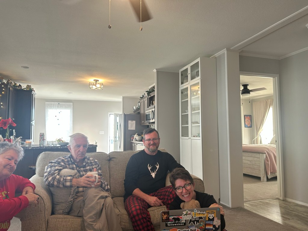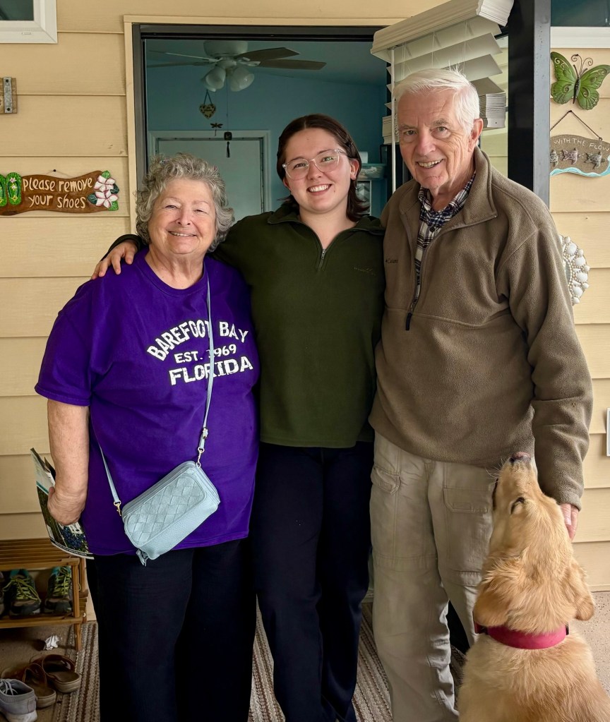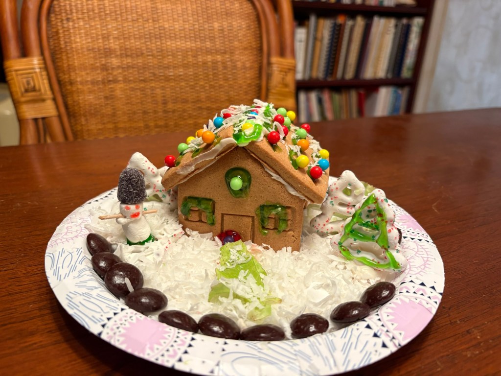 We had a wonderful holiday season with friends and family. While we desperately missed Elliot and Alexa, we cherished every second of our time with Meredith. Two weeks is not a long time, but it was enough to fill our cups and do some really fun things. Together we made gingerbread houses and pizzas. We saw Christmas lights and Goofy. We kayaked past alligators and turtles and swam in a spring fed river. We played Tuck and Cribbage and worked on a very hard puzzle. We ate Japanese, Italian, and Larry’s amazing Christmas Feast. We sang and strummed. We drove in golf carts, convertibles, and Louie. We laughed and hugged and snuggled. We went to the gym, book store, and thrift stores. And collectively we made plans for next Christmas when (god willing) we are all together.