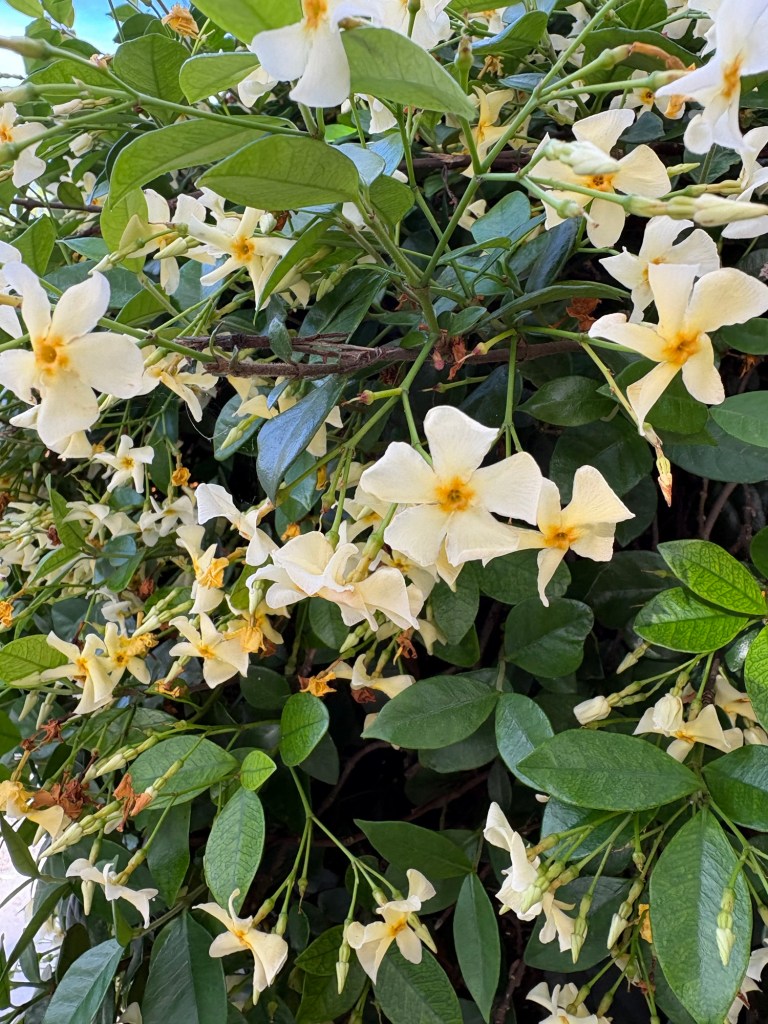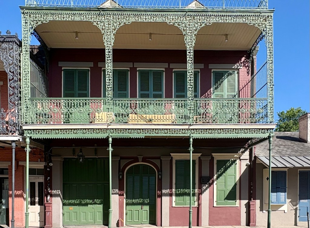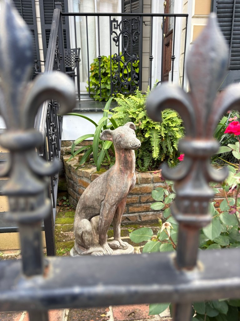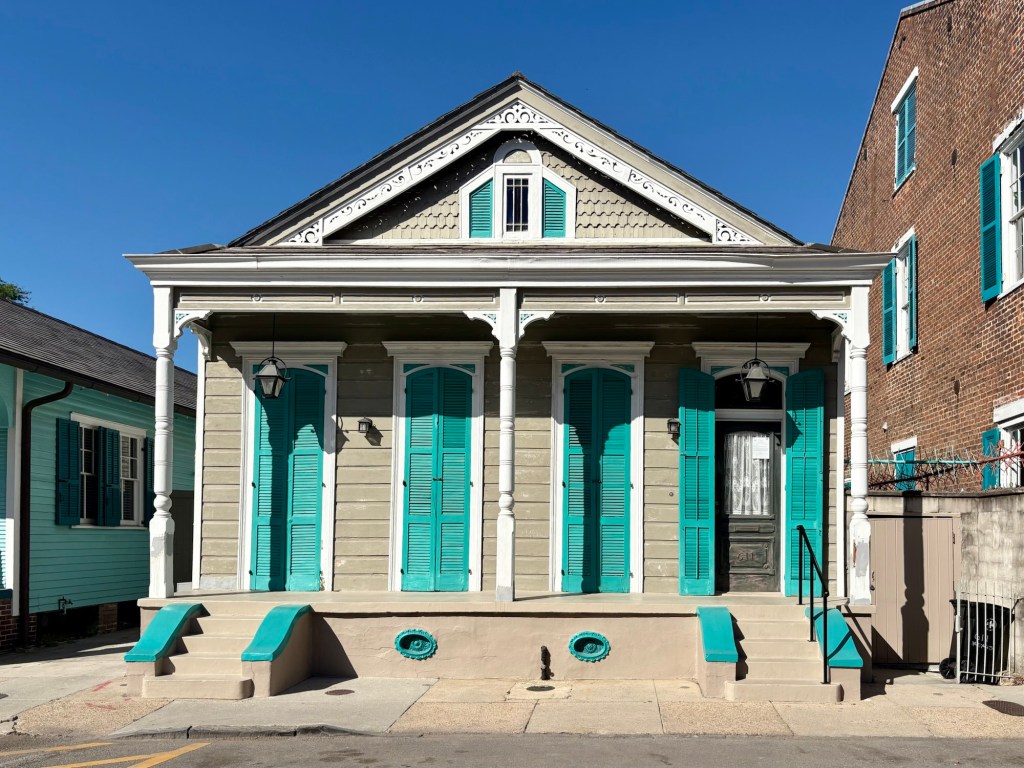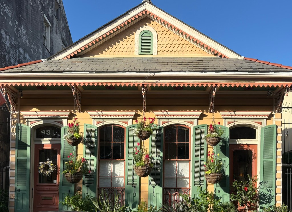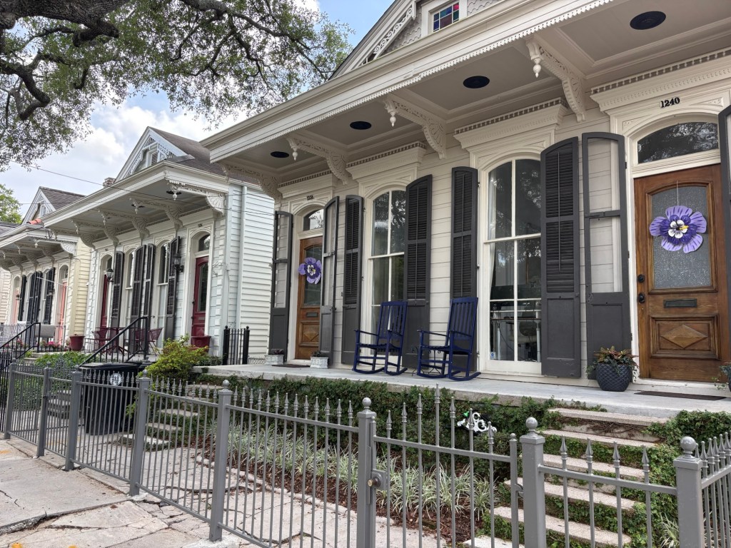 We love staying in the Irish Channel. It is a dense neighborhood contained between Louisiana Street to the east, Jackson Street to the west, and the Garden District to the north. The mighty Mississippi is its impenetrable southern border. Not the scenic Mississippi, though. From most of the Irish Channel you can’t actually see the river at all. This neighborhood has the commerce side of that imposing river. It’s where the trains meet the barges and the barges meet the trucks. There’s constant loading, unloading, hauling. Boat horns, train horns, truck horns. The main street between all that industry and the homes, Tchoupitoulas, is wide and busy with a lot of traffic. There are six blocks of from Tchoup to Magazine Street, the bustling High Street heart for the Irish Channel. The streets between the bordering boulevards are narrow. Parking can be a challenge. There’s one green park, a few schools. Most businesses are on or close to the main outline. Tchoupitoulas is the direct connection to the highways and to downtown. It’s home to many businesses, breweries, stores, and restaurants trying to gentrify this little corner of noise and movement. Jackson has the hipster vibe with vintage stores, food trucks, sandwich shops scattered around. Louisiana is a wide boulevard with ancient live oak trees and the street car track. It has churches, bus stops, and other neighborhood businesses like groceries, gyms, bars. It also has a couple excellent restaurants and music venues. The core of this neighborhood is the homes. Between Louisiana and Jackson lie roughly a dozen blocks of packed homes, colorful houses, barely separated from their neighbor by more than a few feet. Shotgun and row homes, many quite colorful and festooned with seasonal baubles, Mardi Gras flowers, tidy gardens, and iron fences. Some houses are rougher. Surrounded by chain link and in need of paint. Most have half a postage stamp worth of front yard. And in early April the hedges of jasmine fill you with a dizzying, delightful breath of spring.
