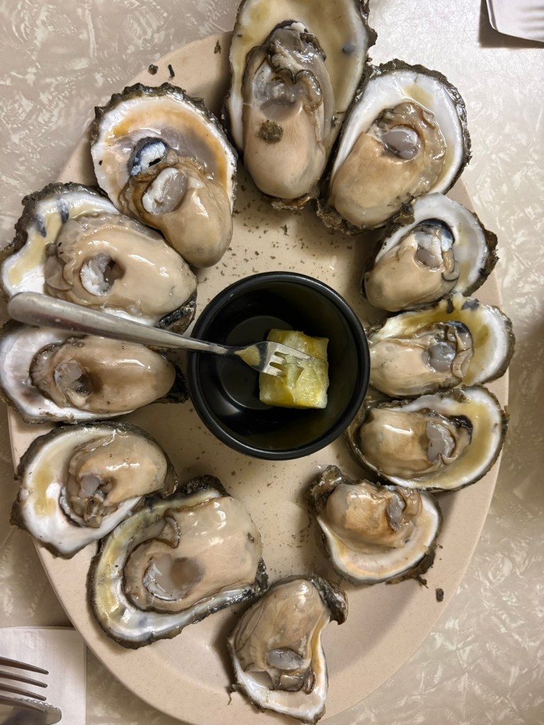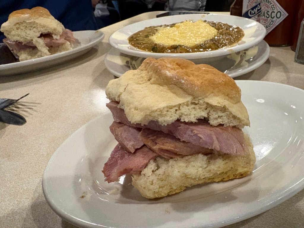 We ate locally: oysters, beignets, muffeletta, gumbo, oyster stew, cornbread, sno-balls, collard green melts, ham biscuits, red beans and rice, crawfish etouffee, duck hash, Creole trinity with popcorn rice. Most of it did not photograph well, but all of it tasted exceptional.