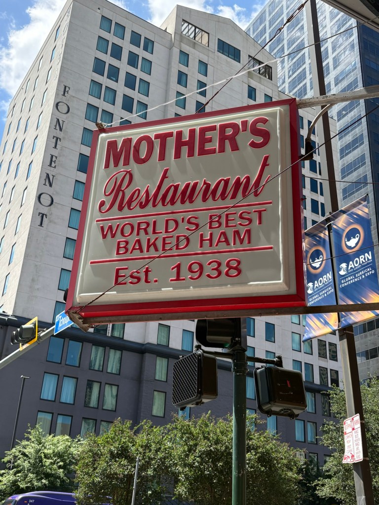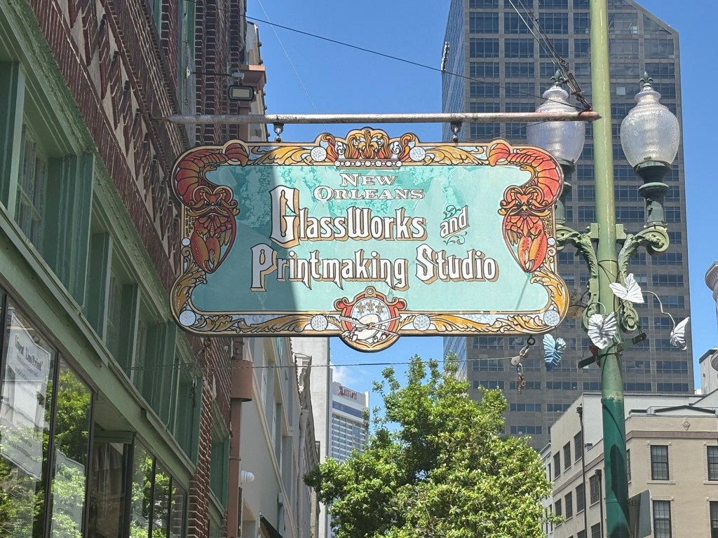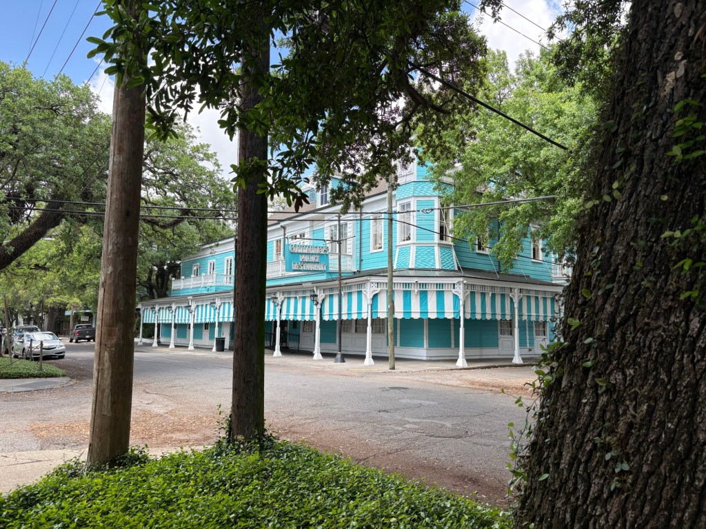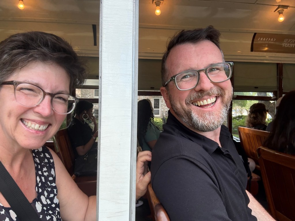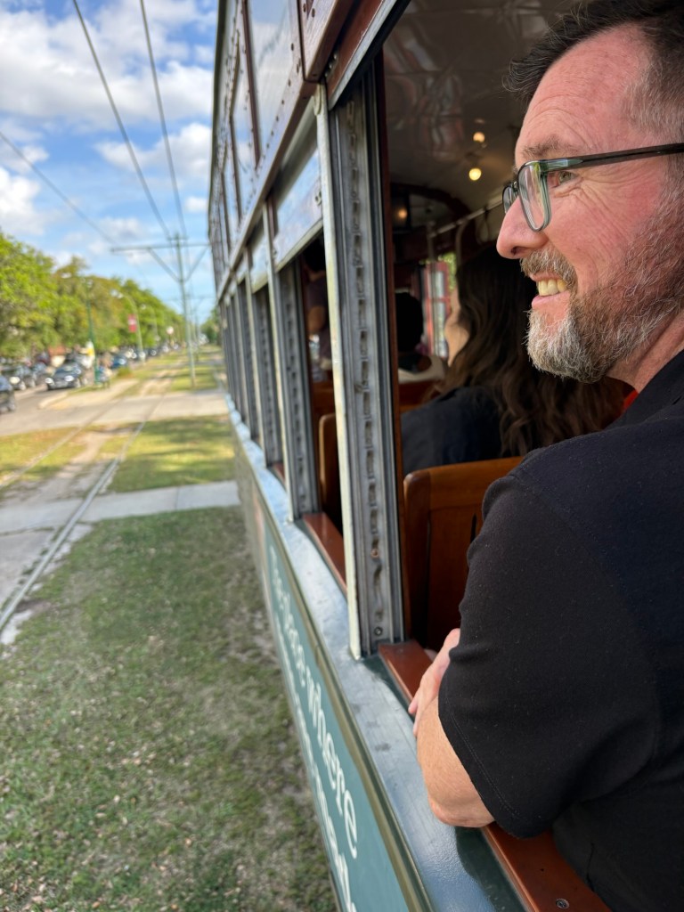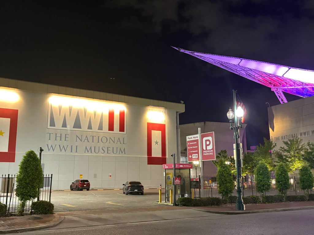 We finally visited the WWII Museum, an incredibly well done museum that was so powerful and beautifully curated with relics and artifacts. Full disclosure: I was so emotionally moved by the stories, death, and horrible similarities to what I’m seeing in the world these days that I could not stay past the Tom Hanks movie. Openly sobbing, I removed myself to the sunshine and blue skies and the here and now. I left Larry to continue experiencing the museum. I told him when he was done to find me along the banks of the Mississippi where I was chatting with a fellow visitor and listening to a local read Scriptures while a second line parade band blew brass in the distance.