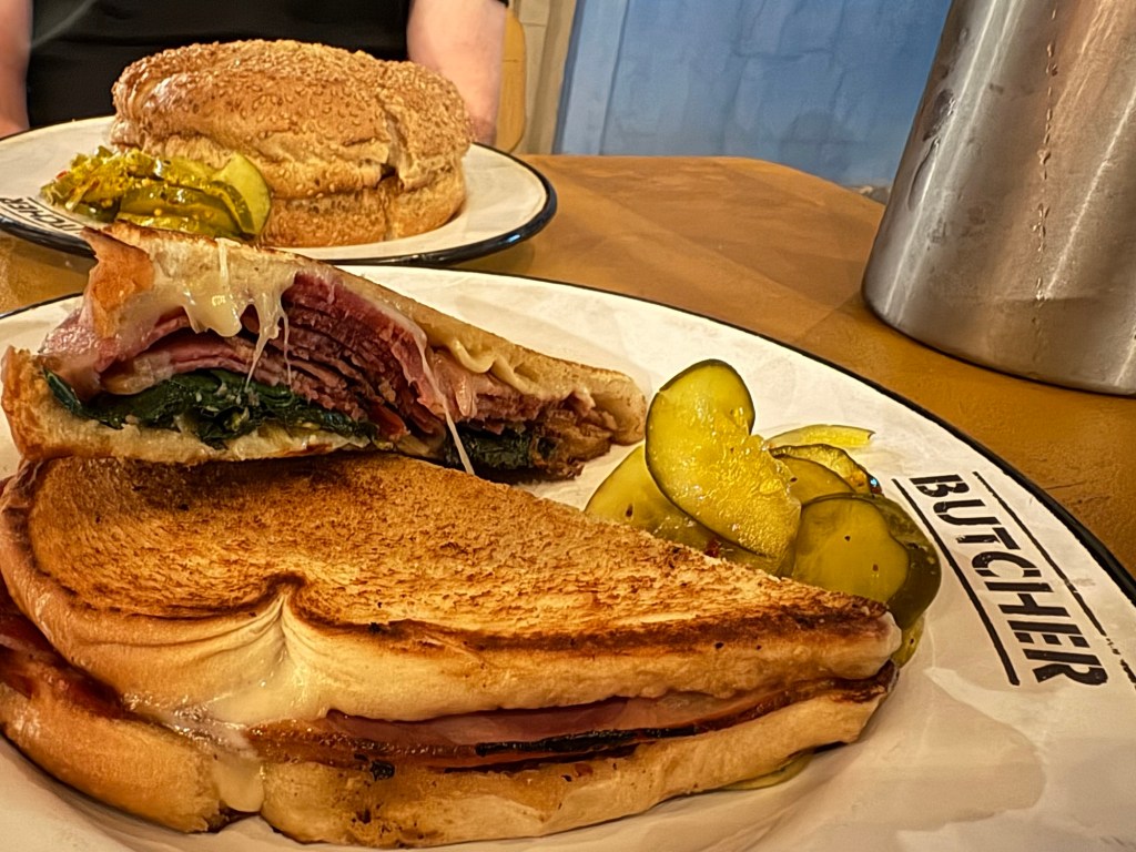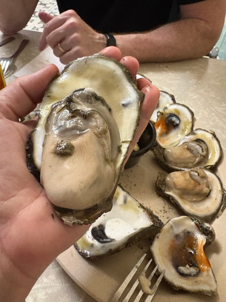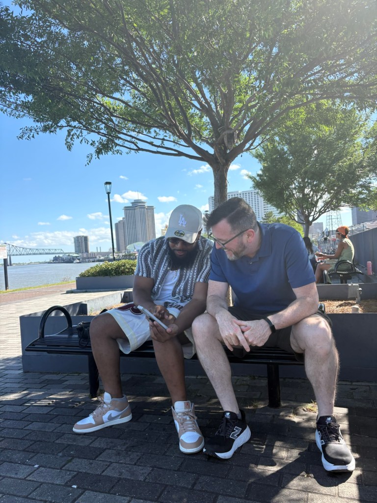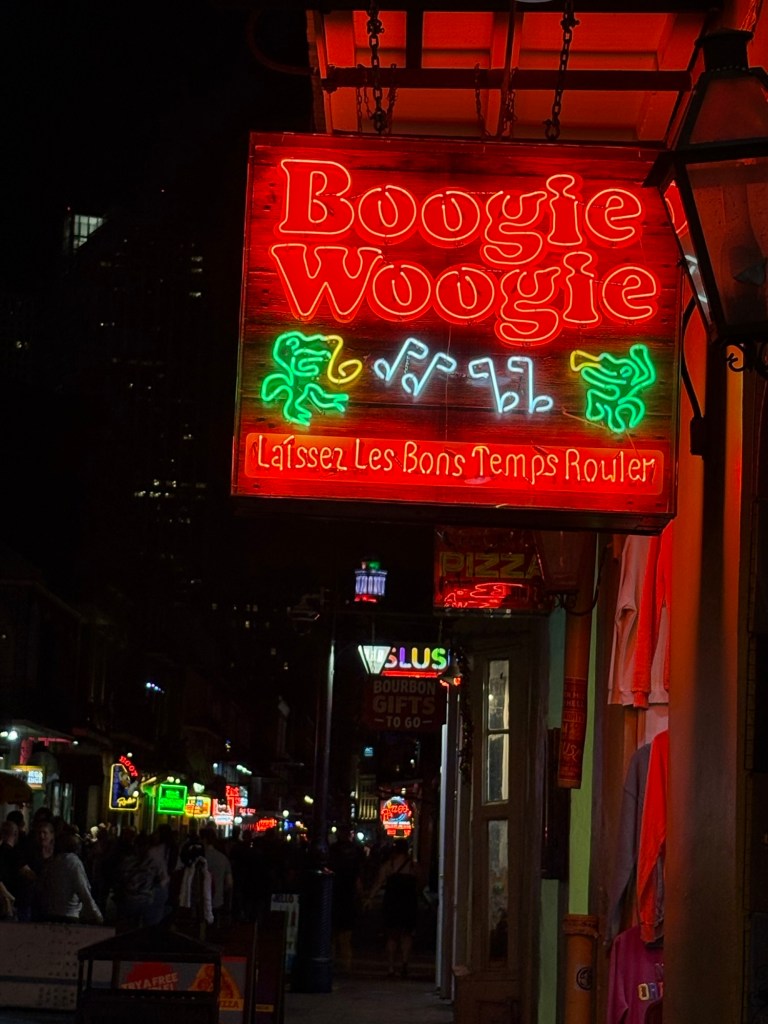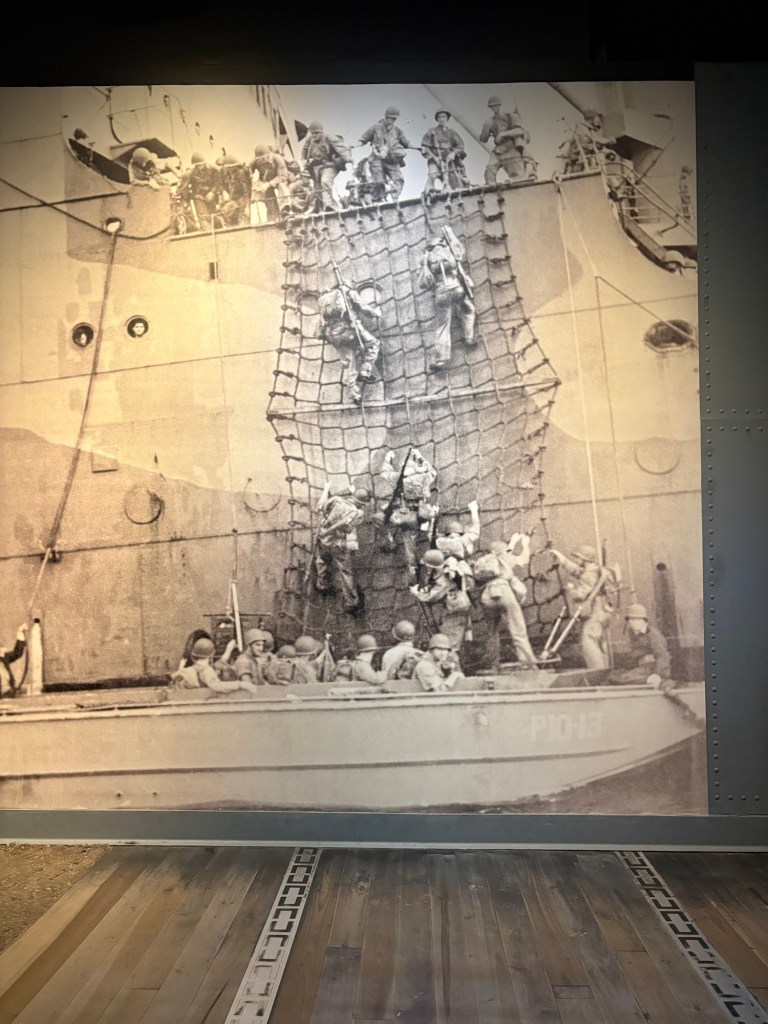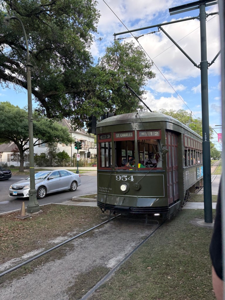 We finally visited the WWII Museum, an incredibly well done museum that was so powerful and beautifully curated with relics and artifacts. Full disclosure: I was so emotionally moved by the stories, death, and horrible similarities to what I’m seeing in the world these days that I could not stay past the Tom Hanks movie. Openly sobbing, I removed myself to the sunshine and blue skies and the here and now. I left Larry to continue experiencing the museum. I told him when he was done to find me along the banks of the Mississippi where I was chatting with a fellow visitor and listening to a local read Scriptures while a second line parade band blew brass in the distance.
