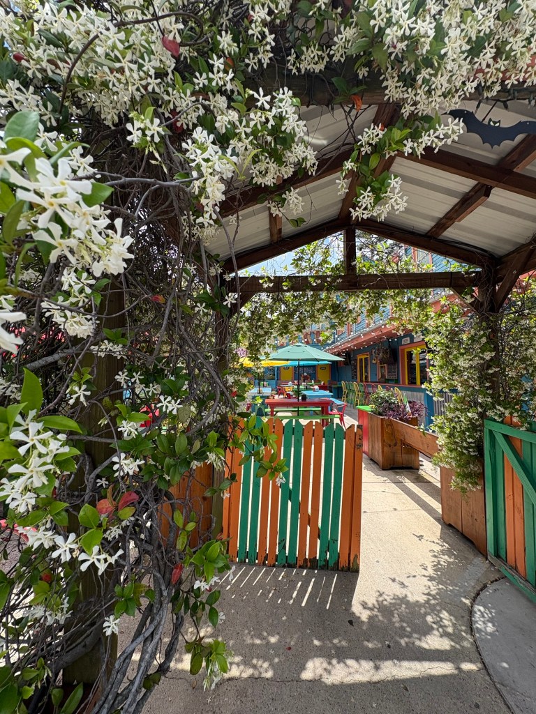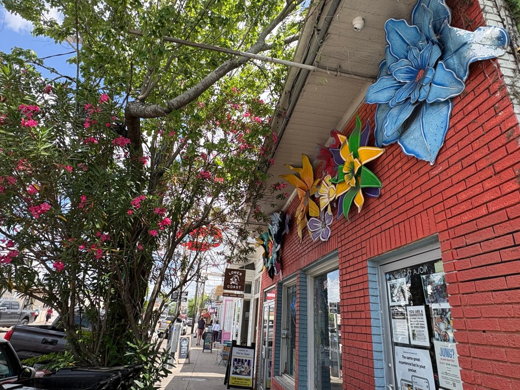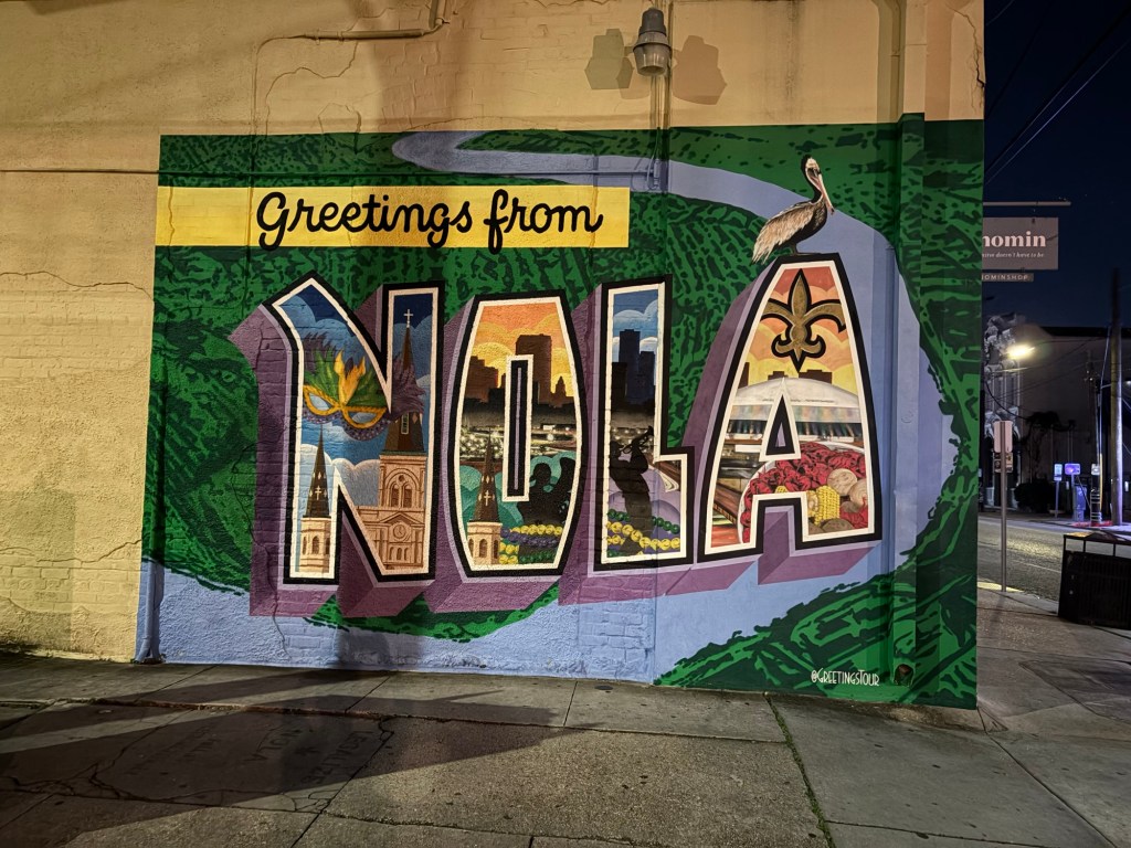 I don’t know what I can say about New Orleans that hasn’t already been said by people far more talented and observant that I am, but I feel compelled to capture our last visit before too much time passes and too many other cities fill my brain. We came in from Gulf Shores, Alabama, and we arrived well before dark. Immediately there were things that haven’t changed since our last visit (horrid road conditions, thick traffic, litter and graffiti, people on the streets who haven’t had the easiest life). There were also things that were new to us. The looping concrete overpasses now sported vividly painted support beams. Pinks, yellows, greens, with artistic floral swirls held up the roads. It was literally a bright spot in a sea of gray. It was something pretty to rest your eyes upon and it felt like a hopeful welcome. As we made our way through familiar streets towards the Irish Channel neighborhood, we smiled. Everywhere you looked was something beautiful and something decrepit: shiny beads, flaking paint; the wafting stench of hot garbage, the intoxicating ubiquitous jasmine; elaborate cast iron fences, brick walls topped with dissuading shards of glass; sandwich boards beckoning happy hour guests, plywood and spray paint warning people away; charming cobble and brick, heaving sidewalks and crumbling streets; lush floral bushes and vines, vacant lots strewn with rubble. It’s like no where else I’ve ever seen, and it’s one of my favorite cities in which to linger overlong, chatting with locals.