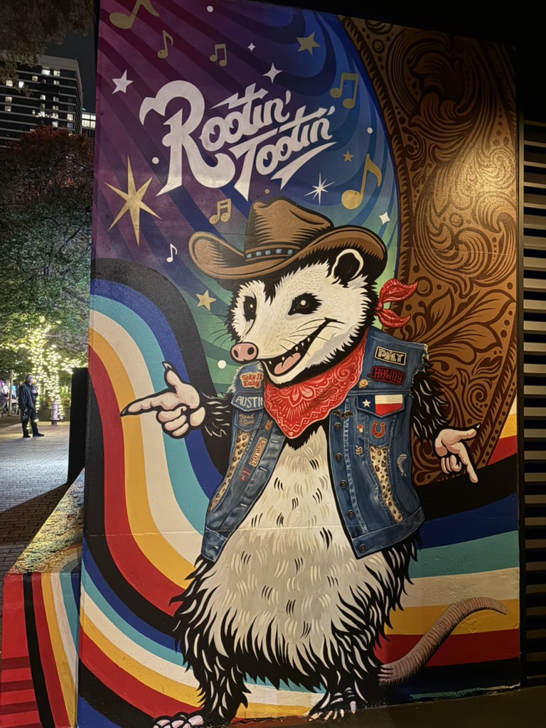 We left New Orleans and drove to Austin, Texas. It’s a familiar route for us, and it passed uneventfully. We did try to go through the area known for the famous Blue Bonnet flower fields, but alas, the season was every early this year, and there were none to be seen. Last time we were in Austin we stayed in an Airbnb. This time we used a Hipcamp site, which was essentially some dude’s driveway in one of the suburbs of the city. It may not have been super convenient, but it was cheap and quiet and safe. Austin has a robust Waymo and Uber culture, so we were able to leave Louie mostly parked either in the driveway or at the YMCA and use the ride share services. We tried to use the Waymo as much as possible. It’s wild to sit in the passenger back seat and watch the ghost in the machine drive the car expertly. While in Austin we enjoyed live music, dancing, and brisket. We also got to check off a bucket list item for Larry: Go to a matinee, mid day, mid week to see a movie. We watched Project Hail Mary at the Alamo Drafthouse and reveled in this little thing that we can do now that he is not employed. On our second night we accidentally stumbled upon Greek Prom, the formal evening for the sororities and fraternities. The city and its establishments were overrun with young, drunk, formally dressed children. So we happily headed back to Louie. We took advantage of the weather and spent one day walking all along the river. We visited the Umlauf Sculpture Garden, continued walking back into downtown to the Stevie Ray Vaughn statue, then over to Lambert’s to share an expertly made brisket sandwich. It was the best brisket we tasted this trip. We also had excellent Mexican at Matt’s, a treasured institution within walking distance of the Broken Spoke.